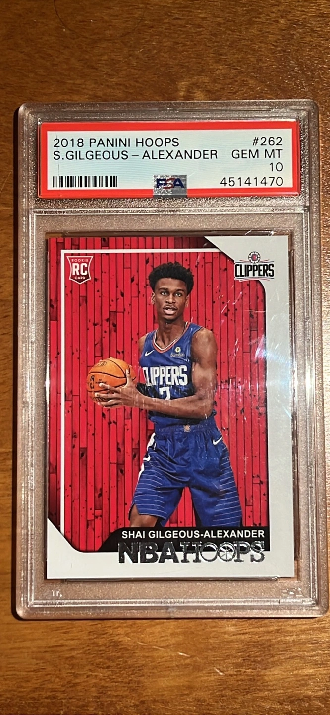 Graded PSA 10 Gem Mint. 2018 Panini Hoops basketball card. Shai Gilgeous-Alexander rookie card. Numbered #262. Los Angeles Clippers.