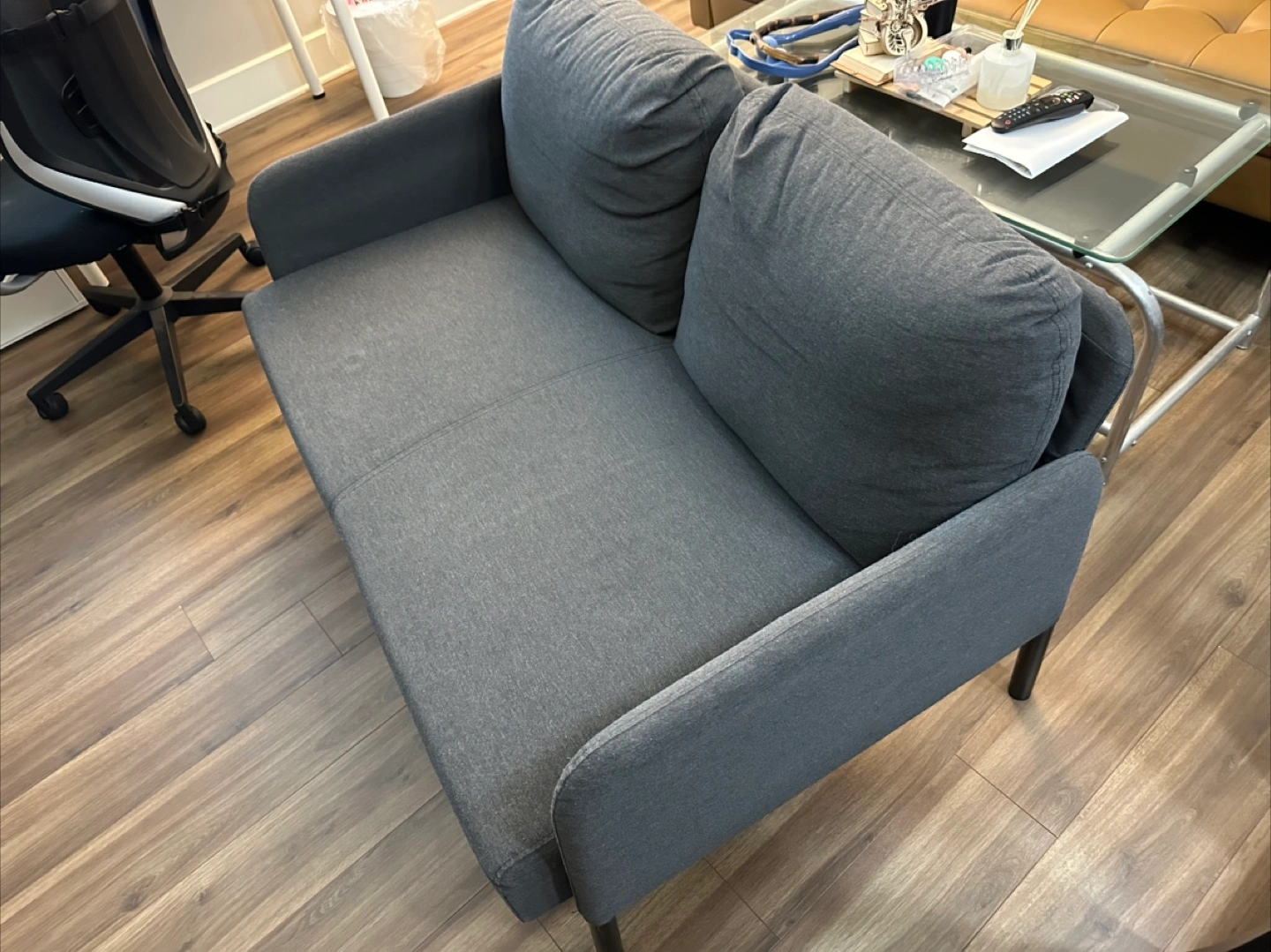 Buy & SellIKEA Glostad - GreyIKEA Glostad - Grey$100Two-seater loveseat. Dark grey fabric upholstery. Sleek, modern design. Black metal legs. Good condition. Dimensions in image. Pick up onlyWHERE TO MEETCheck LocationView MapSELLERYPKWestboro50 reviews1 chats·1 favorites·48 viewsSEND CHAT TO SELLERHi YPK! I’m interested in your listing.Hi YPK! I’m interested in your listing.Get the Karrot app to chatSign In to chat