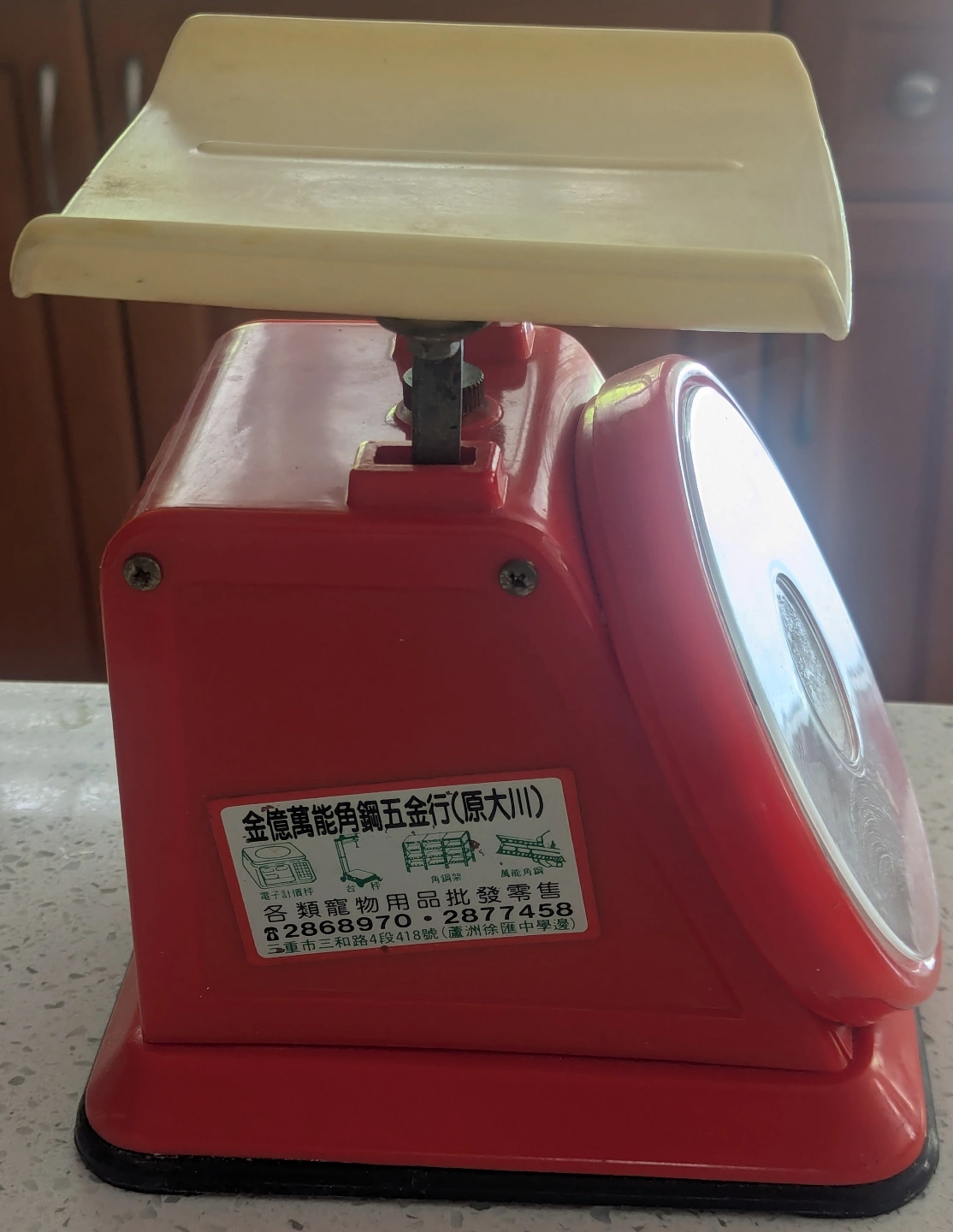 Red vintage kitchen scale. Measures up to 500g. Shows some wear. Great for baking or a unique kitchen addition. ✅ Accept cash only & no e-transfer please ✅ PM me to pick up if interested to buy