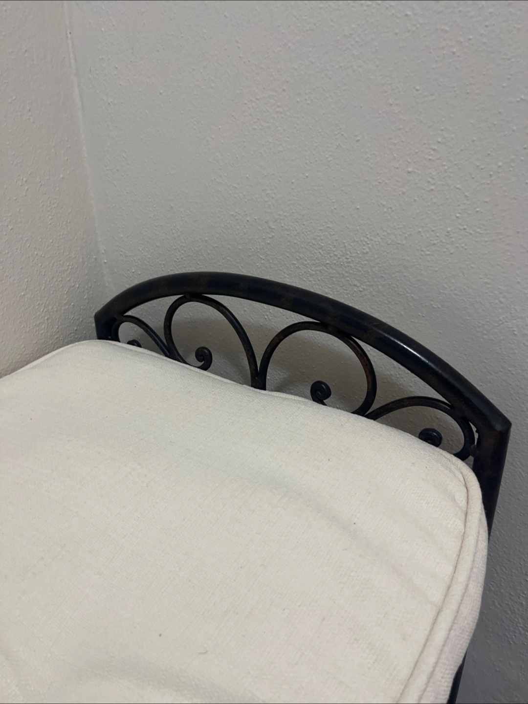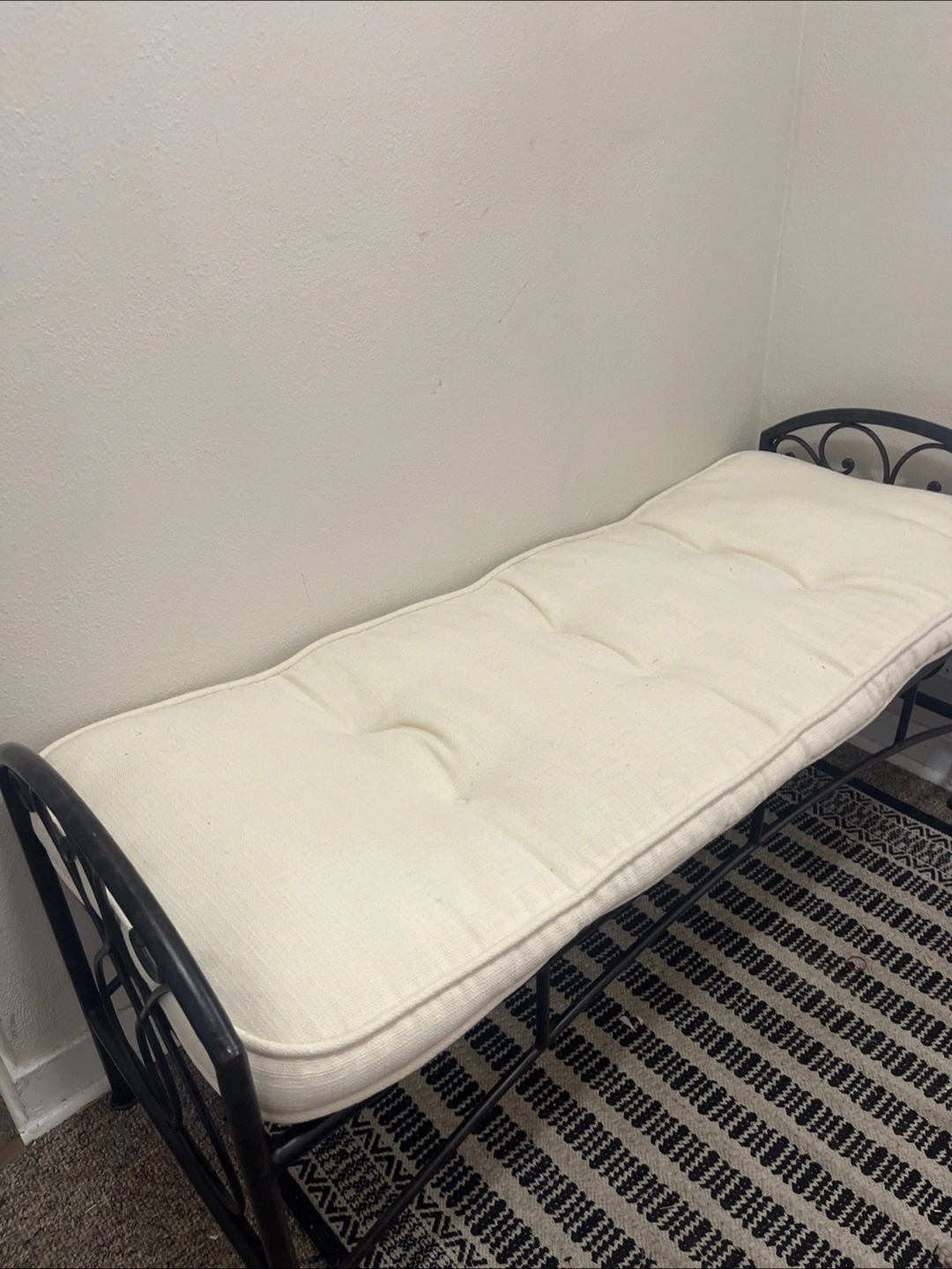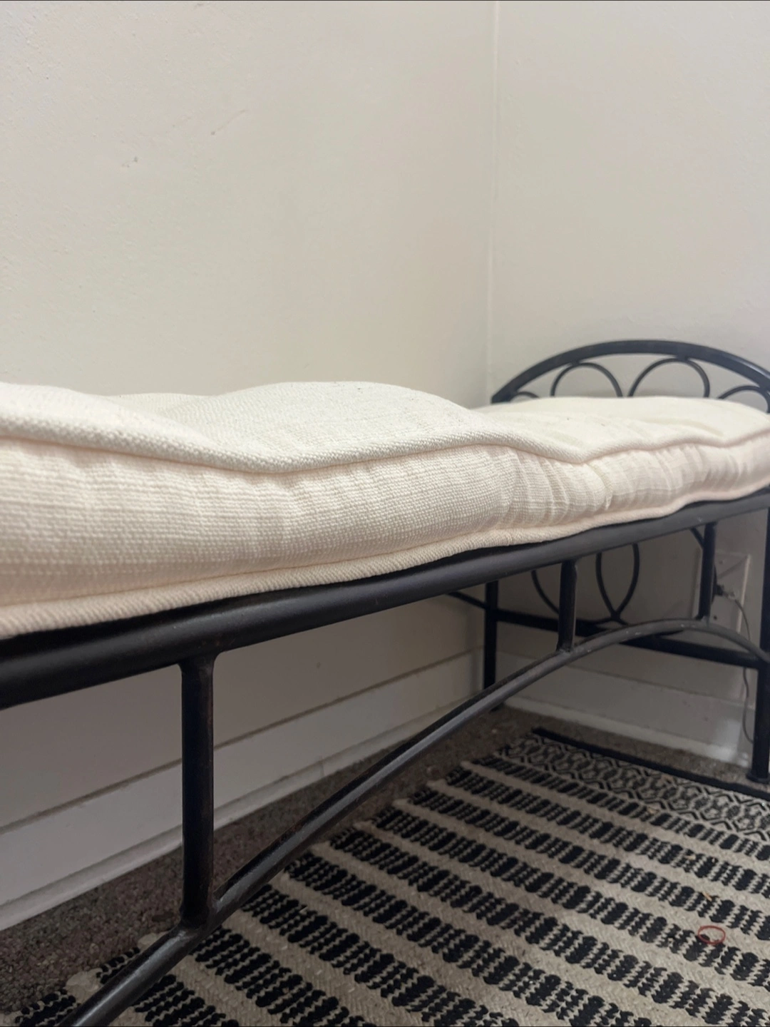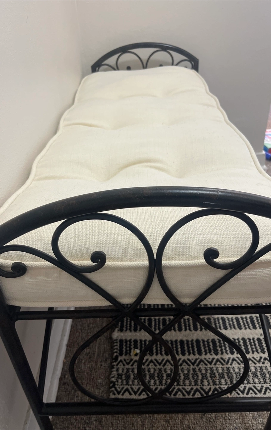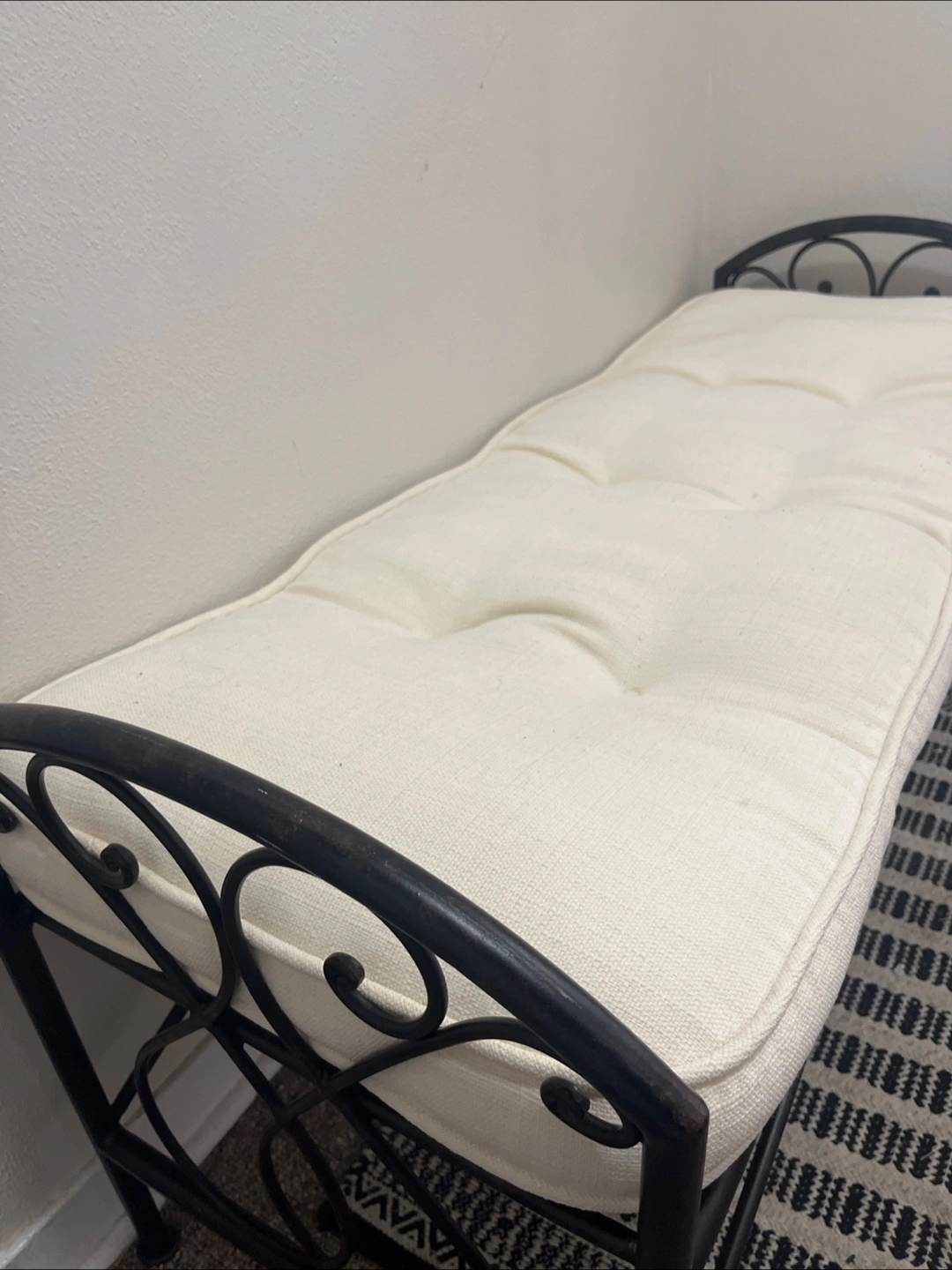 Pier 1 Imports Ornate Metal Bench with Ivory Cushion