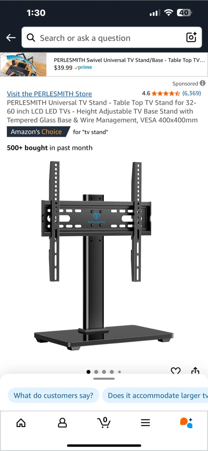 Open to offers Height adjustable TV stand for 32-60 inch LCD LED TVs. Tempered glass base & wire management. VESA 400x400mm. Pick up only cash only