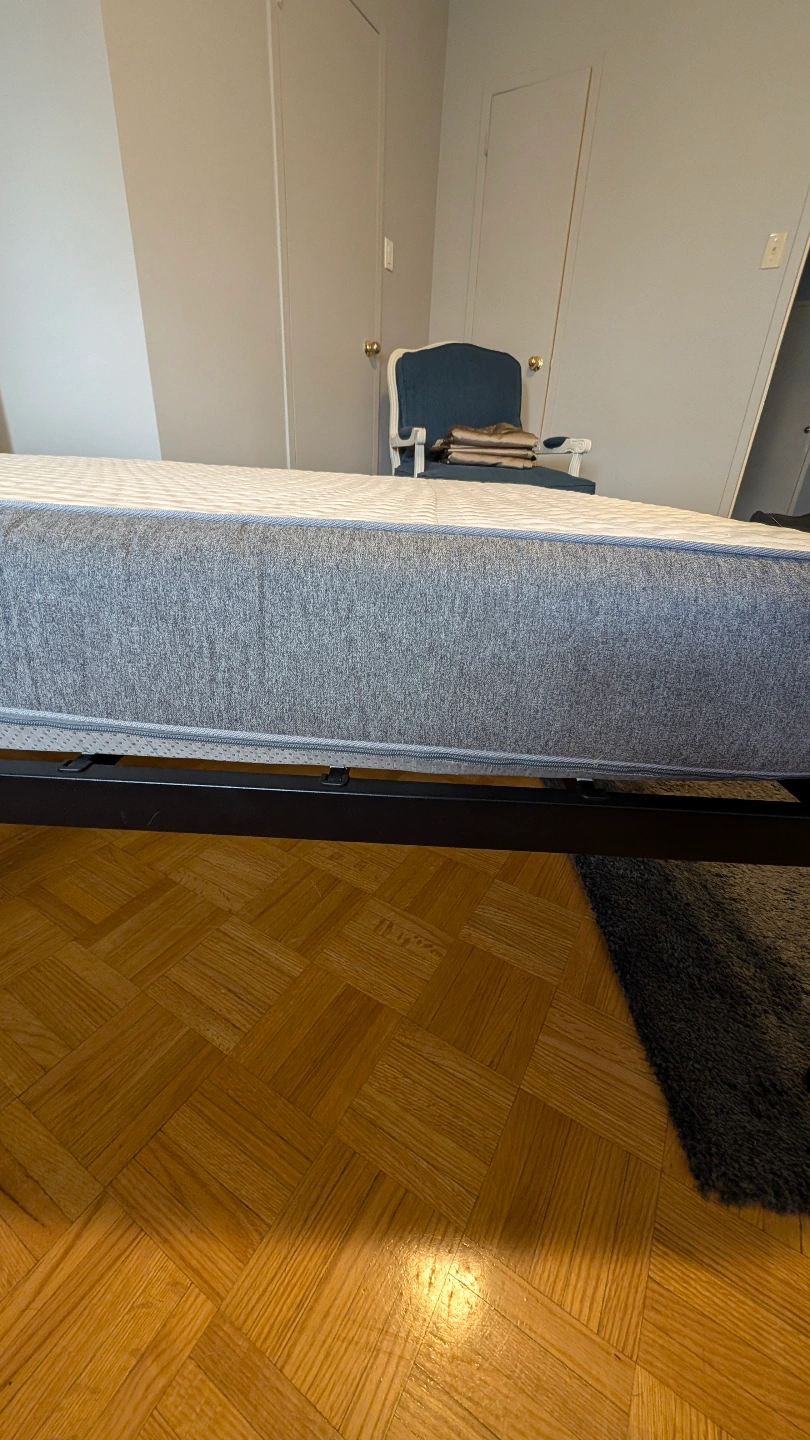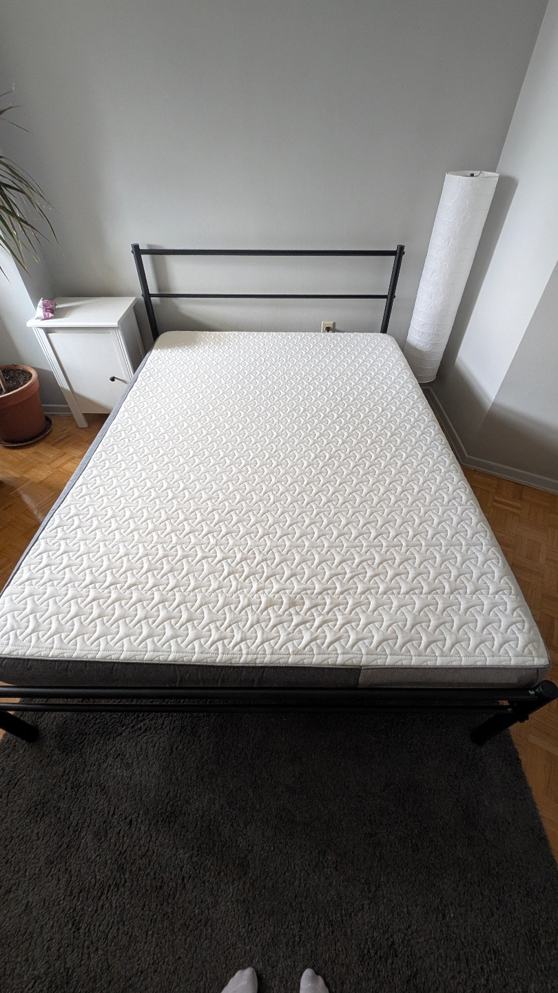 Double mattress and frame. Foam Mattress is in like new condition. Used very little as a guest room bed. Metal frame is very easy to assemble. I have the tool to build it and the instructions. Frame is already disassembled and ready to move. will easily fit into an SUV. cover is removable and washable.