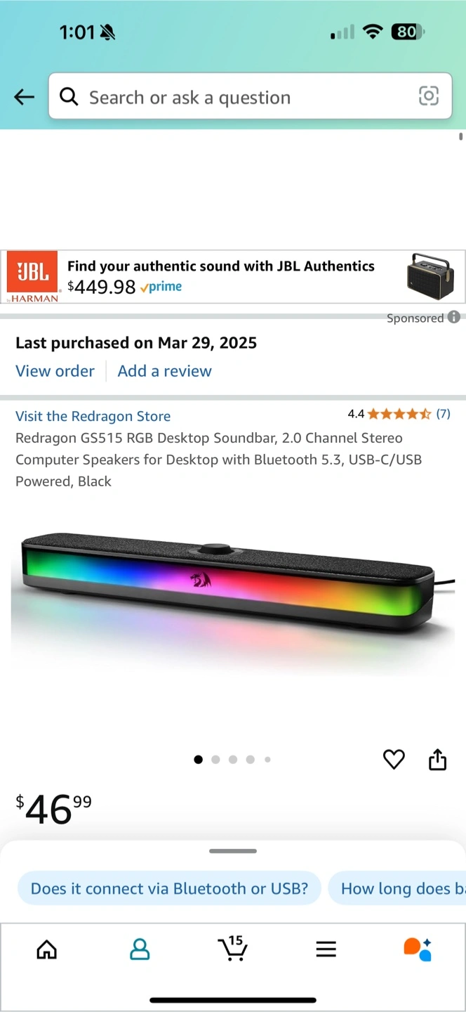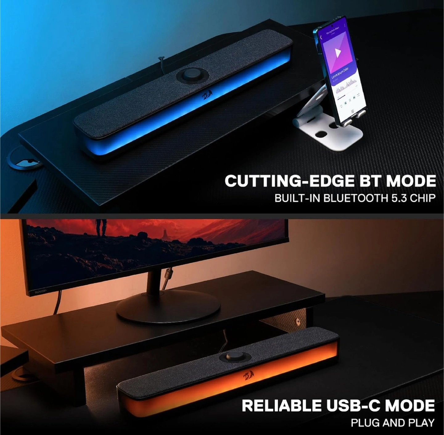 265RGB desktop soundbar. 2.0 channel stereo computer speakers. Bluetooth 5.3 and USB connection. Dual 5W audio driver units. 50mm sound units. Selling for 35$ Regular price 46.99$ ( before tax)