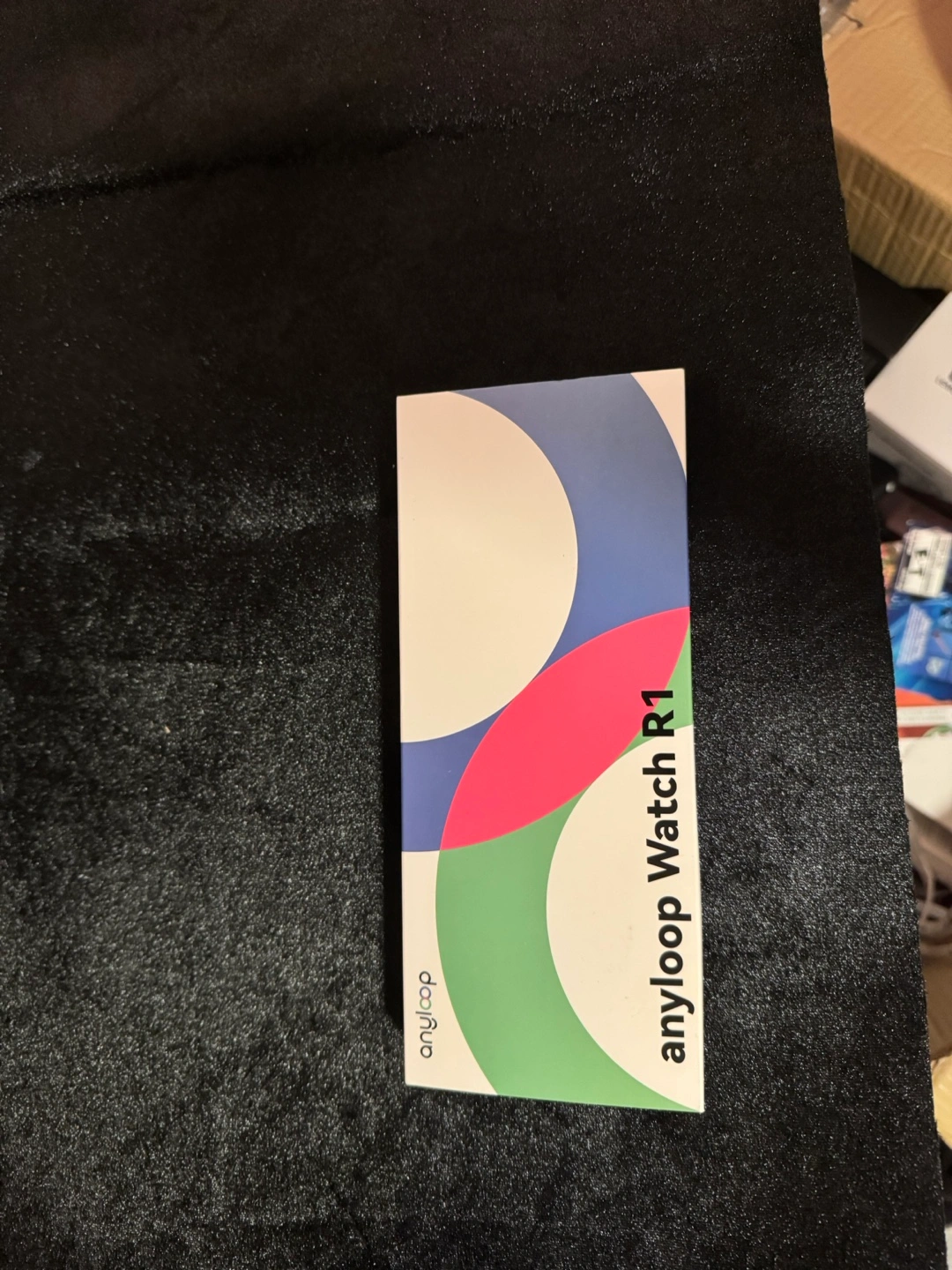 Brand new anyloop Watch R1 smartwatch. Black colour. Includes charging cable and instructions. Fitness tracker, heart rate monitor, sleep monitor, and more. 21-day battery life. Waterproof.