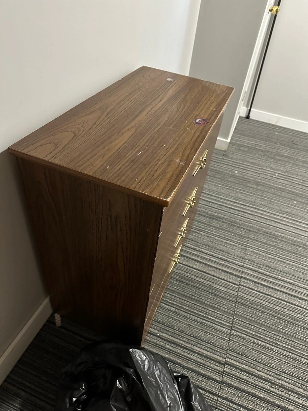 Brown wooden dresser. Five drawers. Minor scratches and scuffs. Good for storage. Solid wood construction. Pickup only Glenbrook sw
