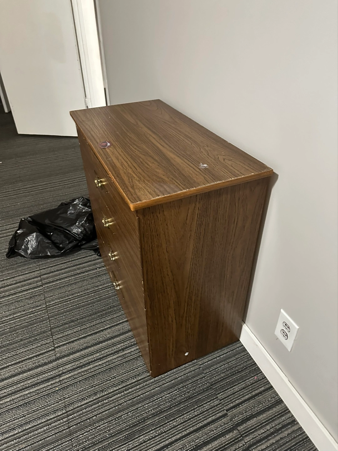 Brown wooden dresser. Five drawers. Minor scratches and scuffs. Good for storage. Solid wood construction. Pickup only Glenbrook sw
