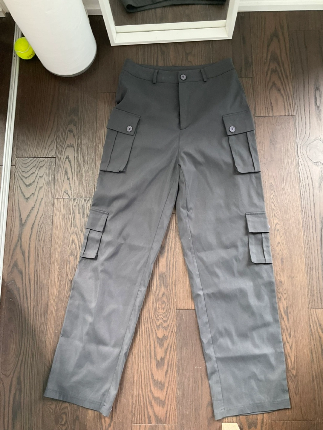 Women's dark grey cargo pants. Multiple pockets. Straight leg. Good condition.