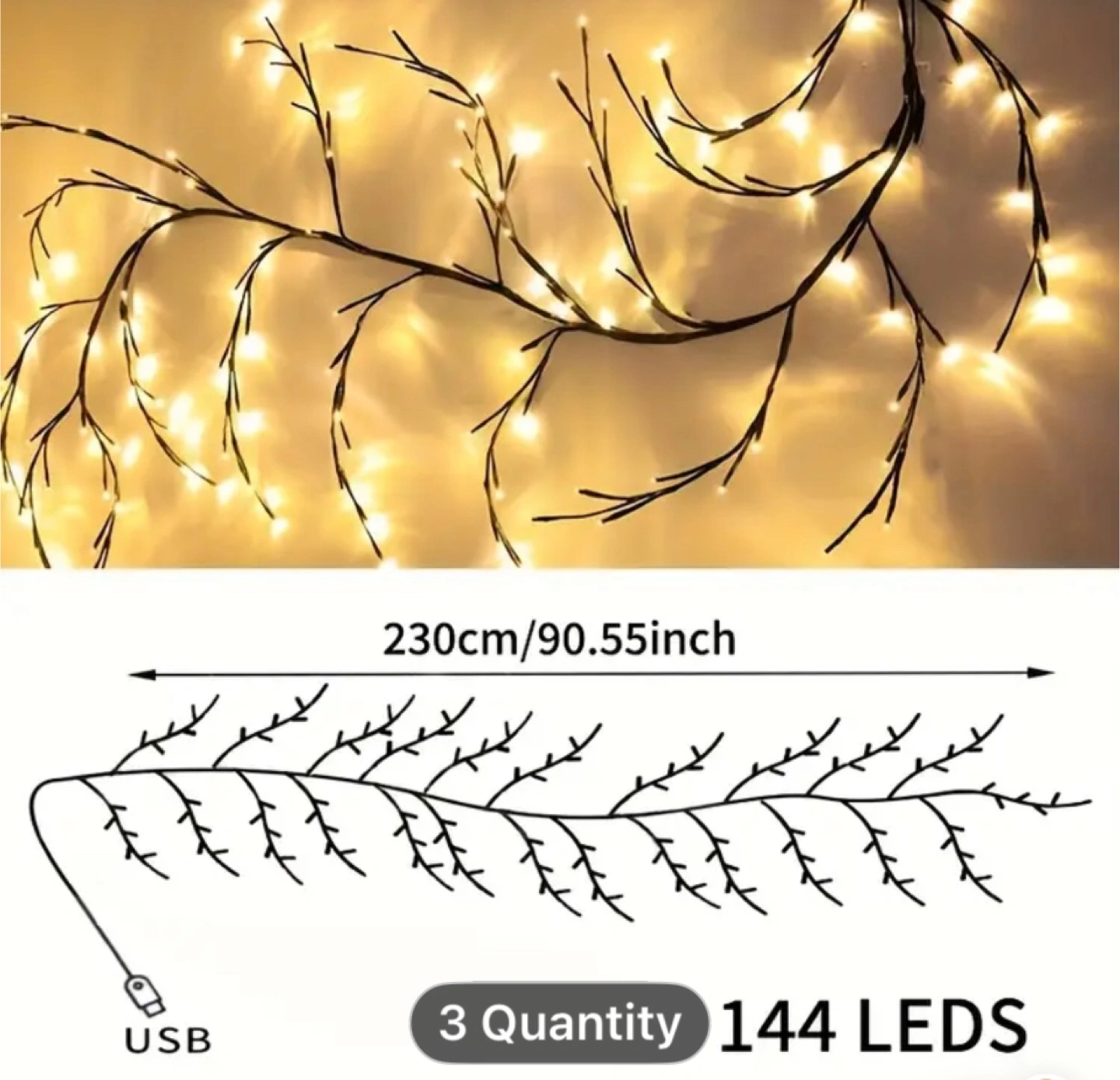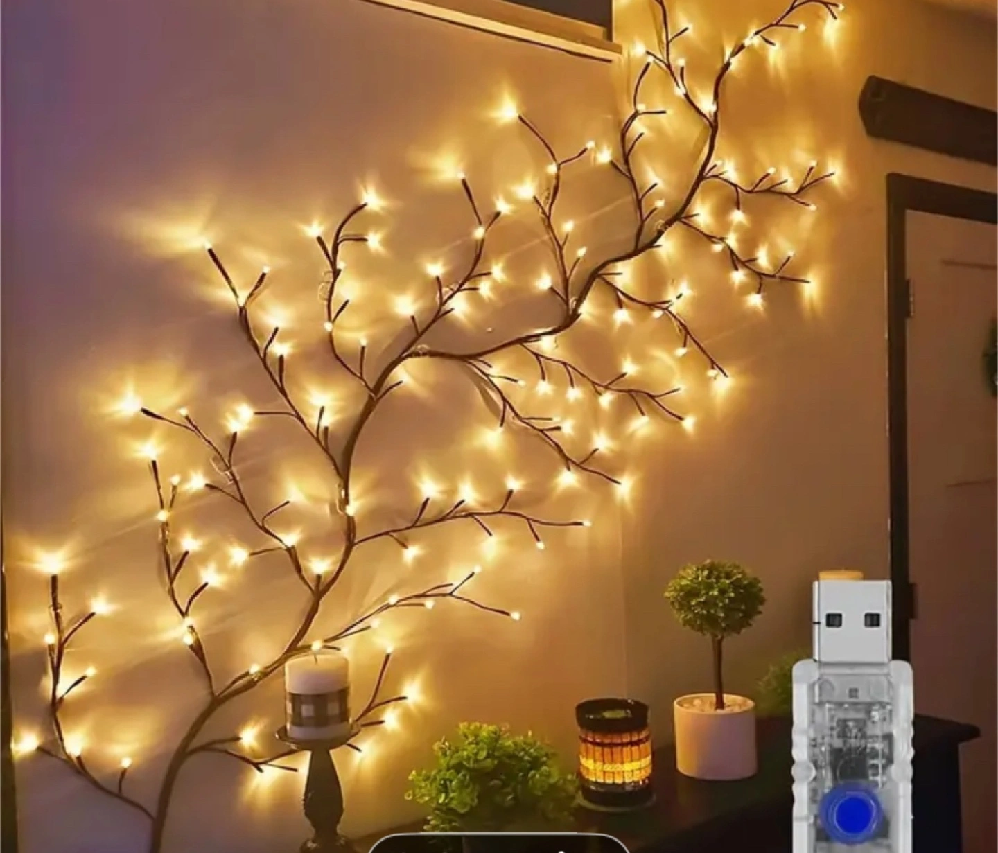 USB powered LED branch lights. Warm white light. Measures 230cm long. Creates a beautiful ambiance. Perfect for bedrooms, living rooms, or any space needing a touch of elegance. First pic is on my wall - rest are from website. Work great!