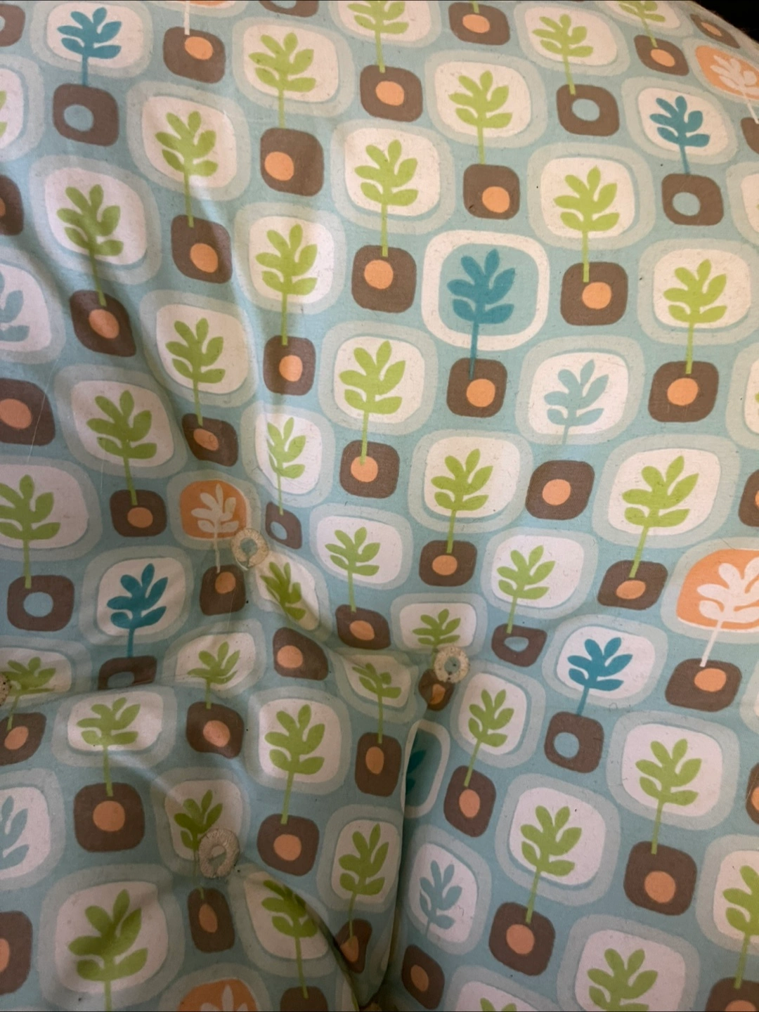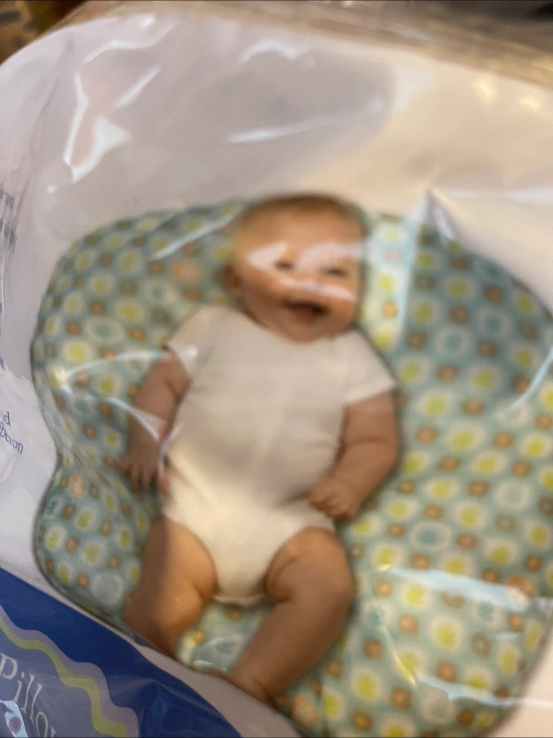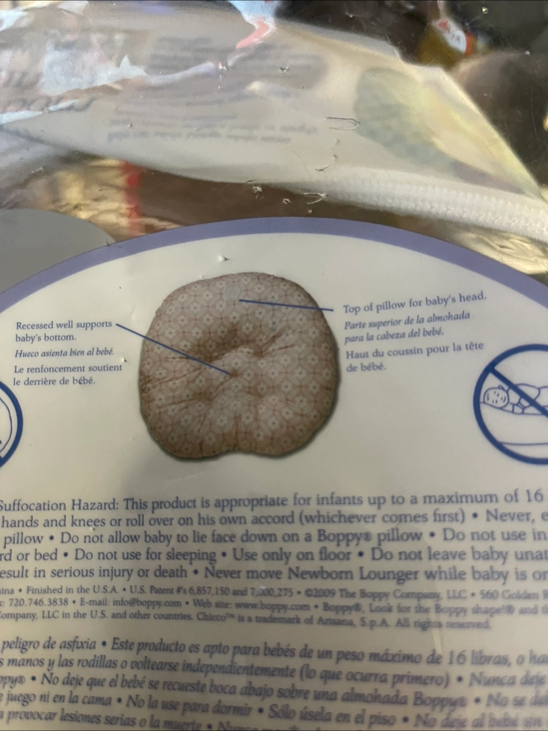 Supports baby's head and bottom. Features a teal and green leaf pattern. Suitable for infants up to 16 pounds. This is still in original packaging but the plastic package is damaged but the Lounger was never used … Old But NEW ????