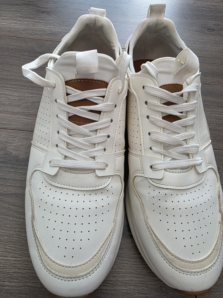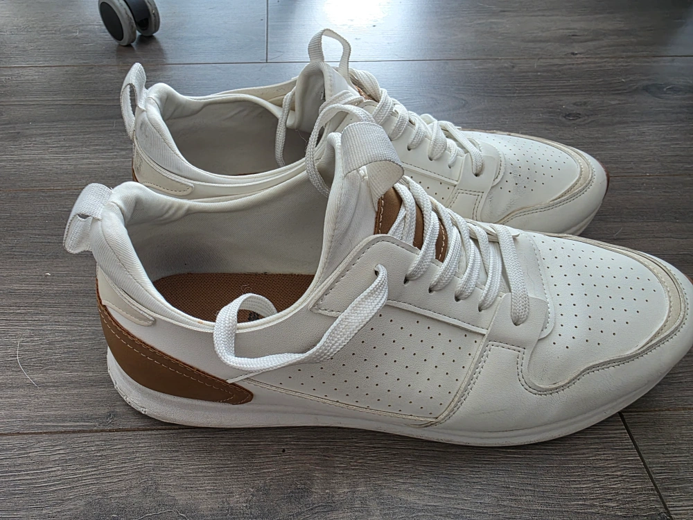Buy & SellWhite and Brown Low-Top SneakersWhite and Brown Low-Top Sneakers$7Pair of white low-top sneakers with brown accents. Lace-up closure. Perforated detailing. Casual style.ConditionLike newSizeUS 11BrandSteve MadenWHERE TO MEETCoquitlam CentreView MapSELLERverifiedJimmyCoquitlam Central1106 reviews1 chats·0 favorites·30 viewsSEND CHAT TO SELLERHi Jimmy! I’m interested in your listing.Hi Jimmy! I’m interested in your listing.Get the Karrot app to chatSign In to chat