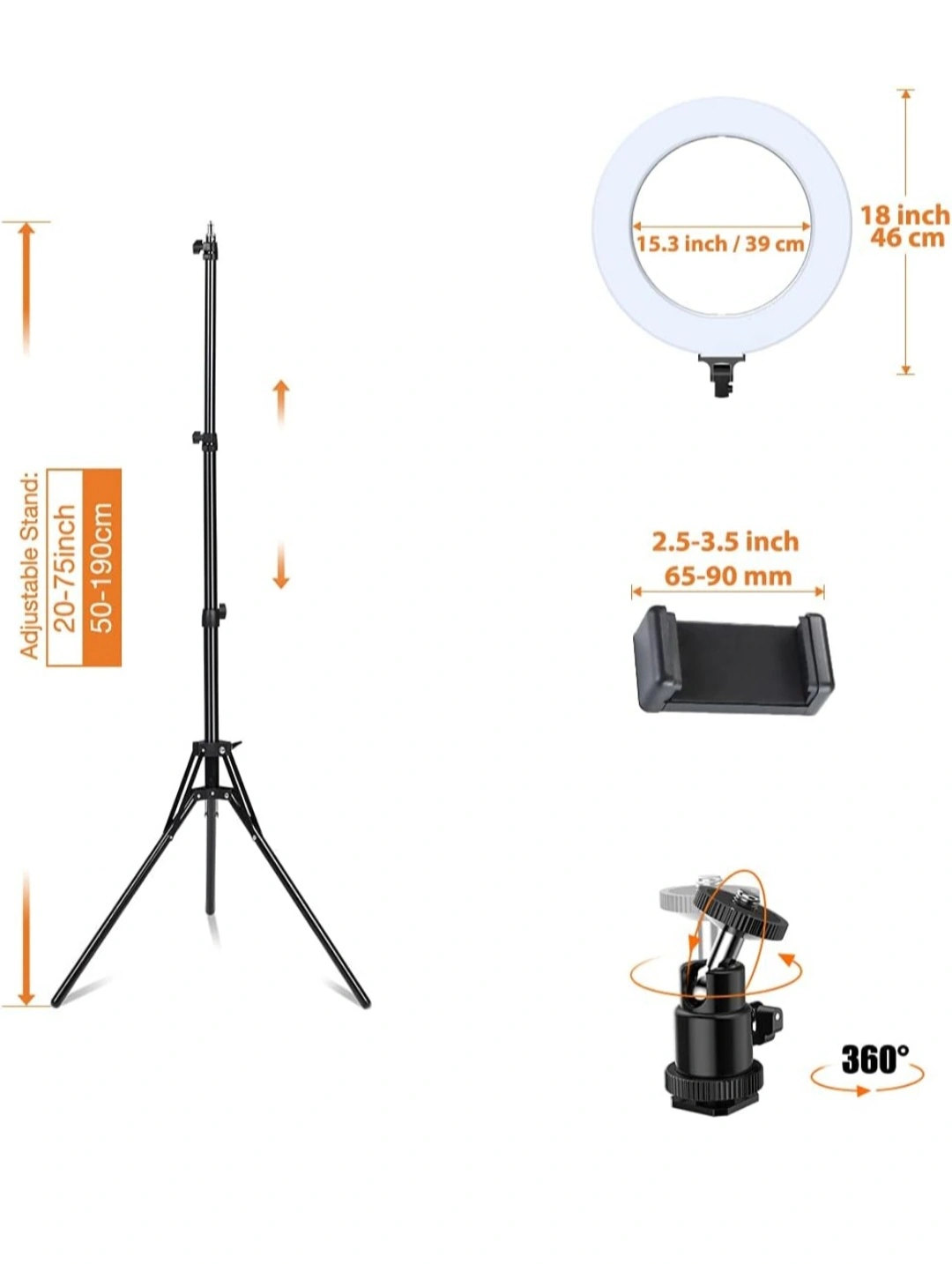 INKELTECH 18-inch 60W Dimmable LED Ring Light Kit with Stand