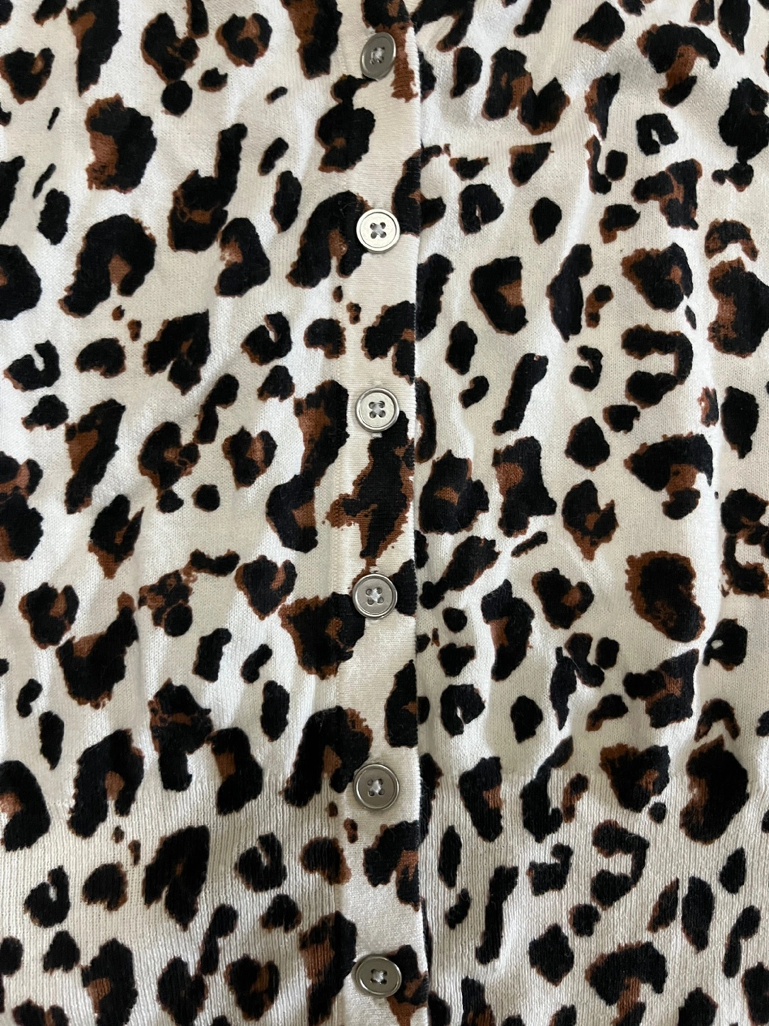 New with tags v-neck cardigan from Ricki’s. White with brown and black leopard print. Six buttons down the front. Long sleeves.