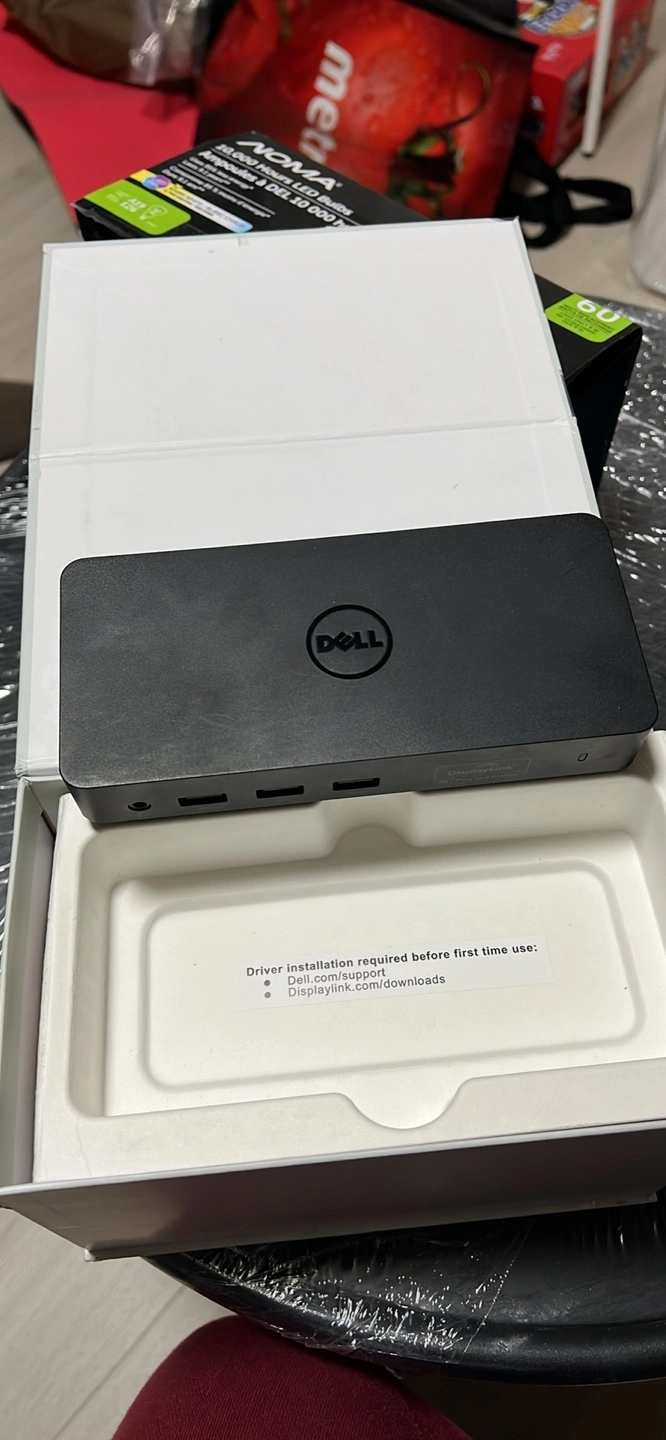 Brand new Dell docking station. Features multiple USB ports, DisplayPort, and HDMI. Driver installation required before first use. Black.