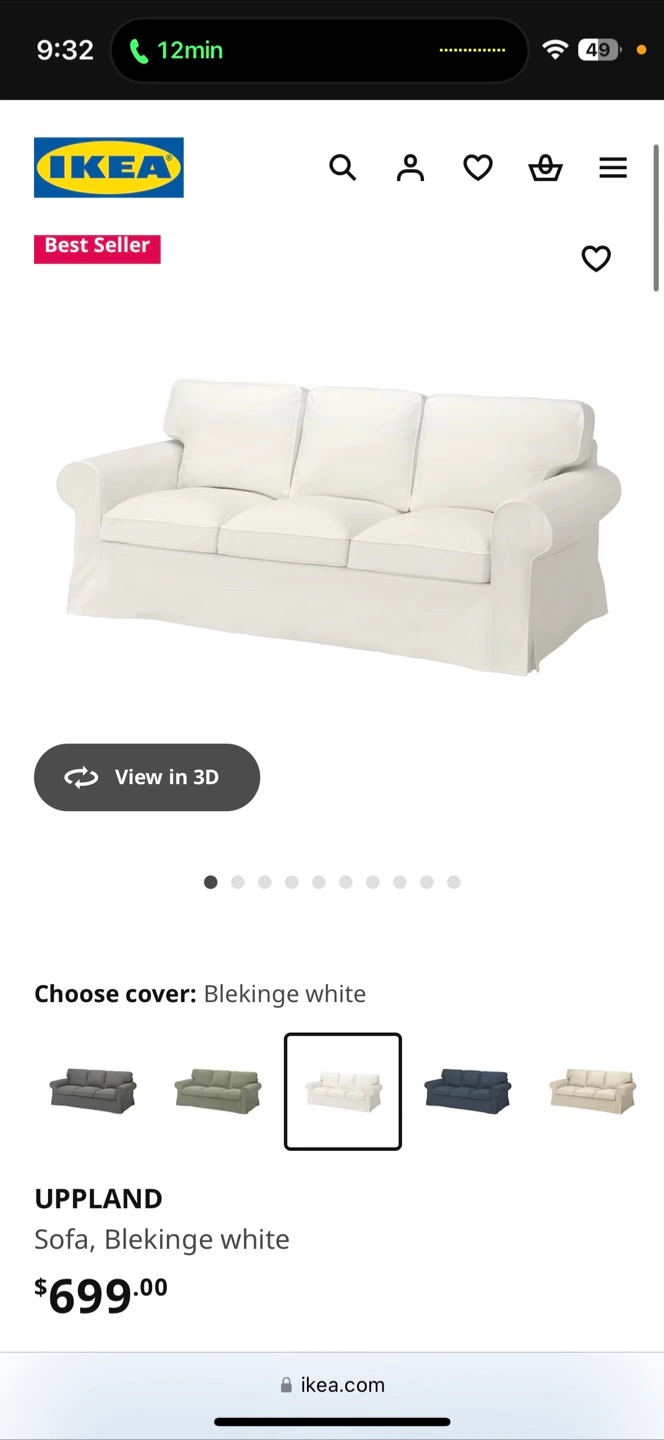 IKEA UPP LAND Sofa with Blekinge White Cover