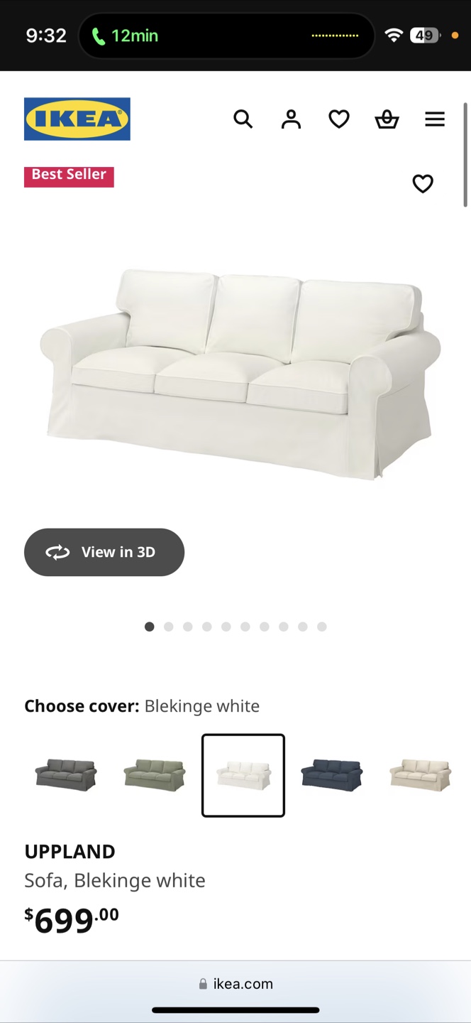 IKEA UPP LAND Sofa with Blekinge White Cover