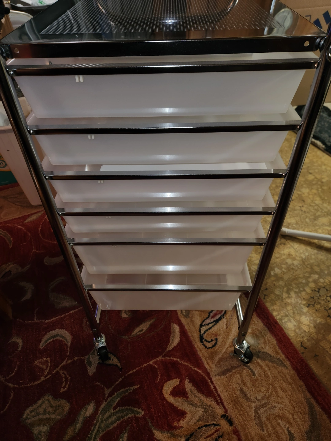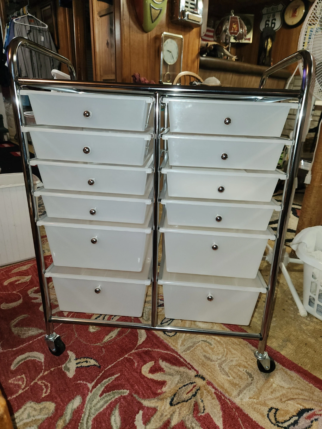 12 plastic drawers.