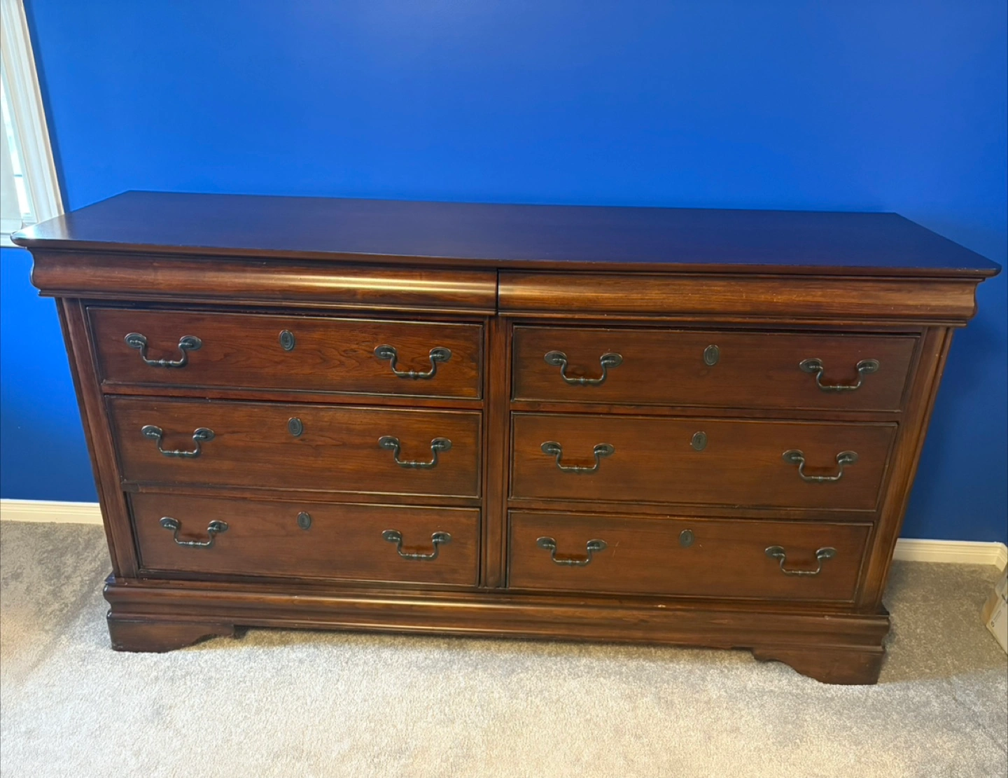 Buy & SellDouble Dresser, Dark Wood, Six DrawersDouble Dresser, Dark Wood, Six Drawers$280Large double dresser. Six drawers, dark wood finish. Black hardware. Good condition. Solid wood construction.WHERE TO MEETCheck LocationView MapSELLERRaySouth London100 reviews0 chats·0 favorites·28 views