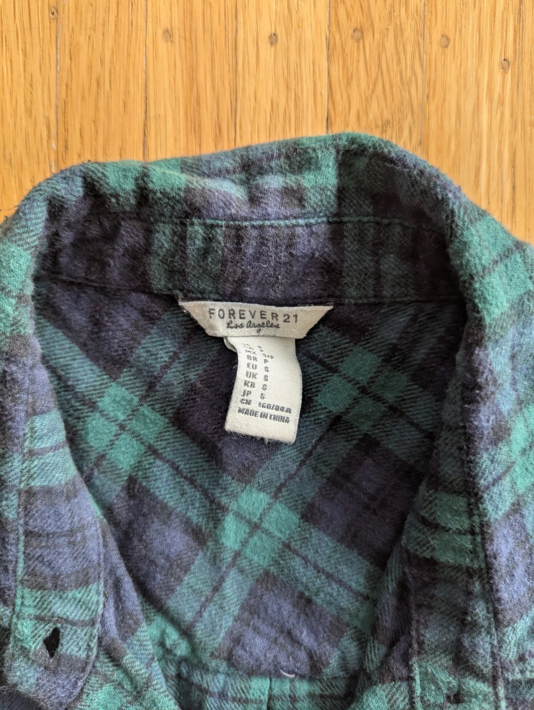 Forever 21 Green Plaid Flannel Sleeveless Shirt - Size Small
