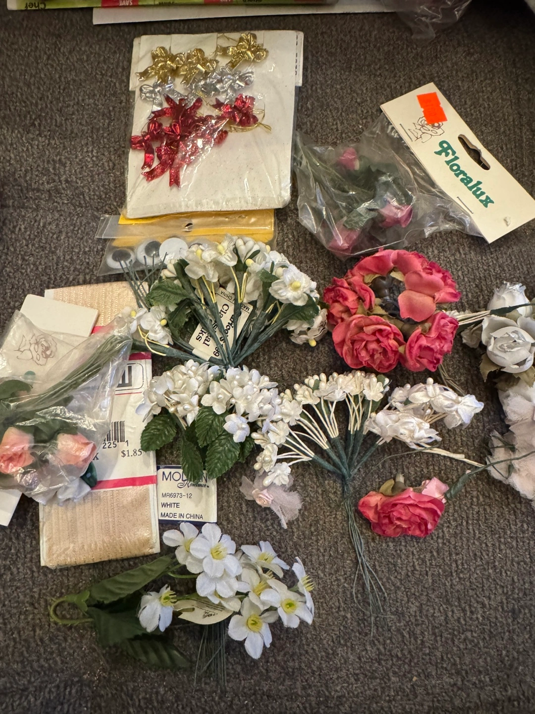 Craft Supplies Lot: Scissors, Fabrics, Flowers, and More!