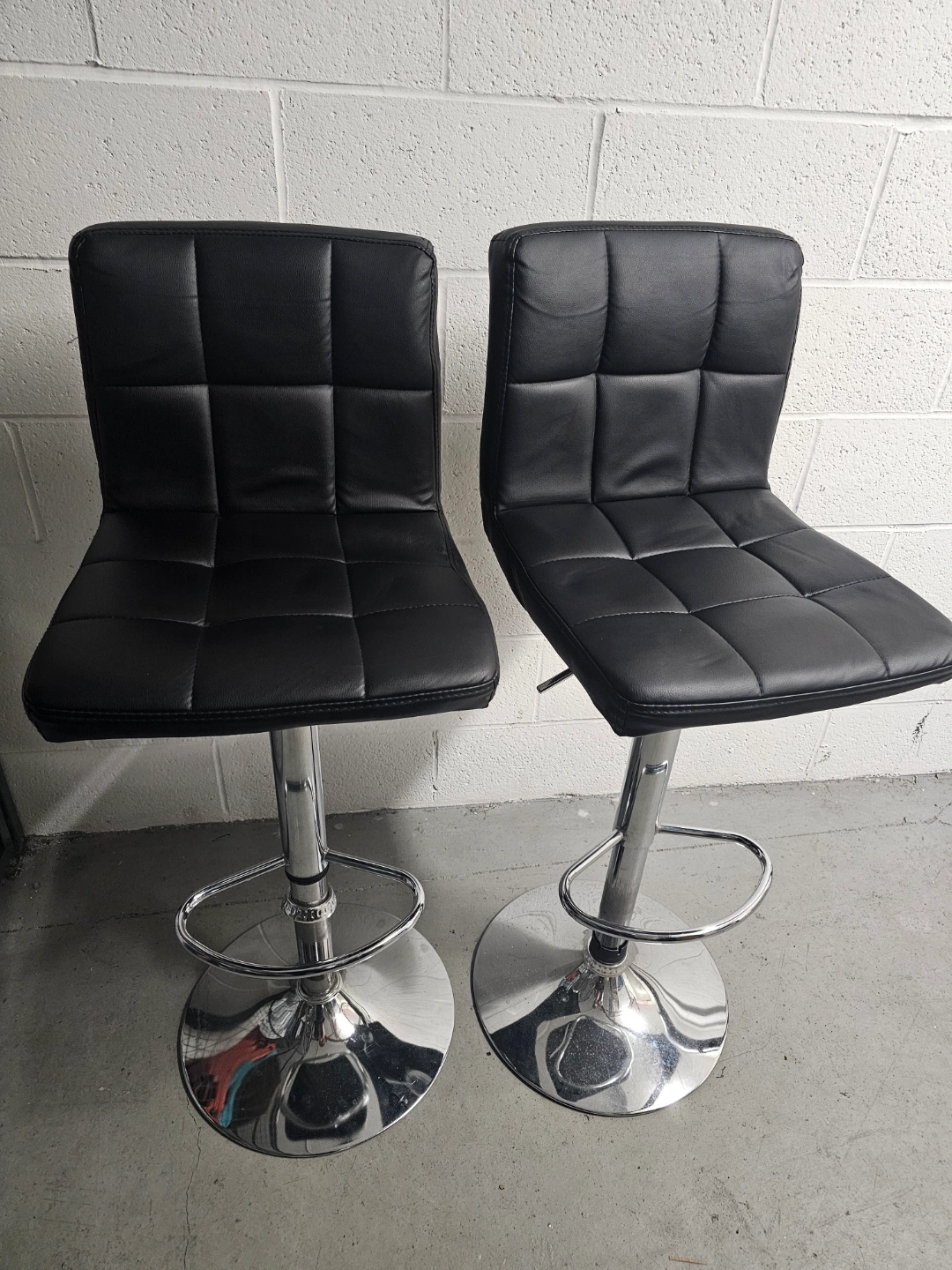 Buy & SellPair of Black Leather Bar StoolsPair of Black Leather Bar Stools$40Two black bar stools. Adjustable height. Chrome base. Modern design. ConditionGoodWHERE TO MEETCheck LocationView MapSELLERverifiedMacConfederation Pkwy711 review1 chats·0 favorites·18 viewsSEND CHAT TO SELLERHi Mac! I’m interested in your listing.Hi Mac! I’m interested in your listing.Get the Karrot app to chatSign In to chat