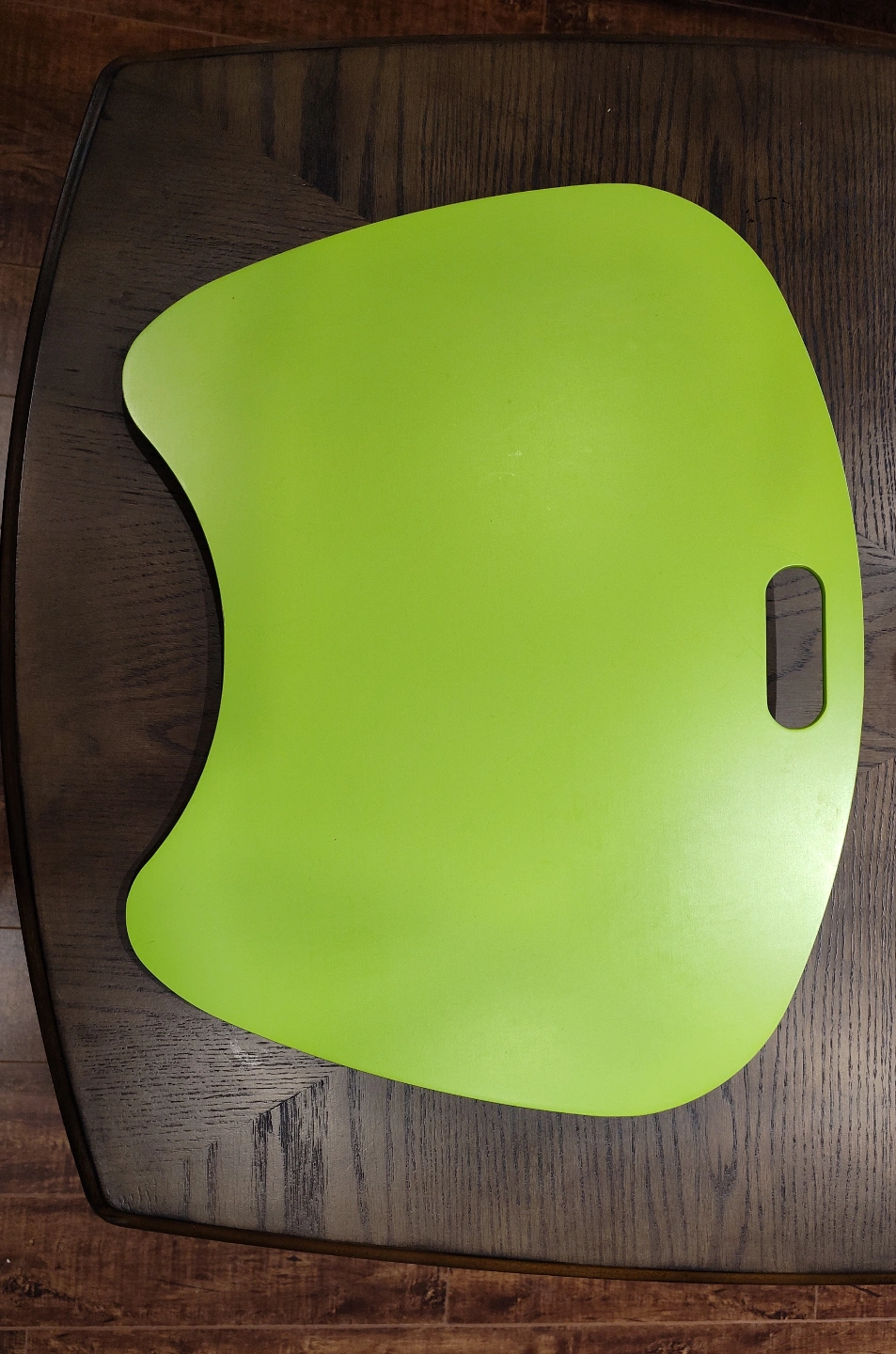Lime green plastic tray with a patterned cushion. Perfect for crafts or snacks. pick up in Lisgar area of Mississauga near Ninth Line and Britannia Rd