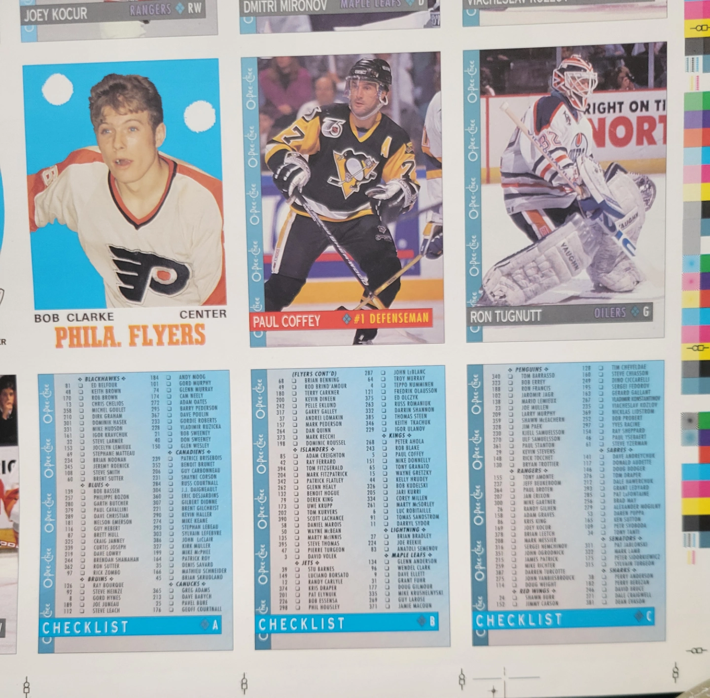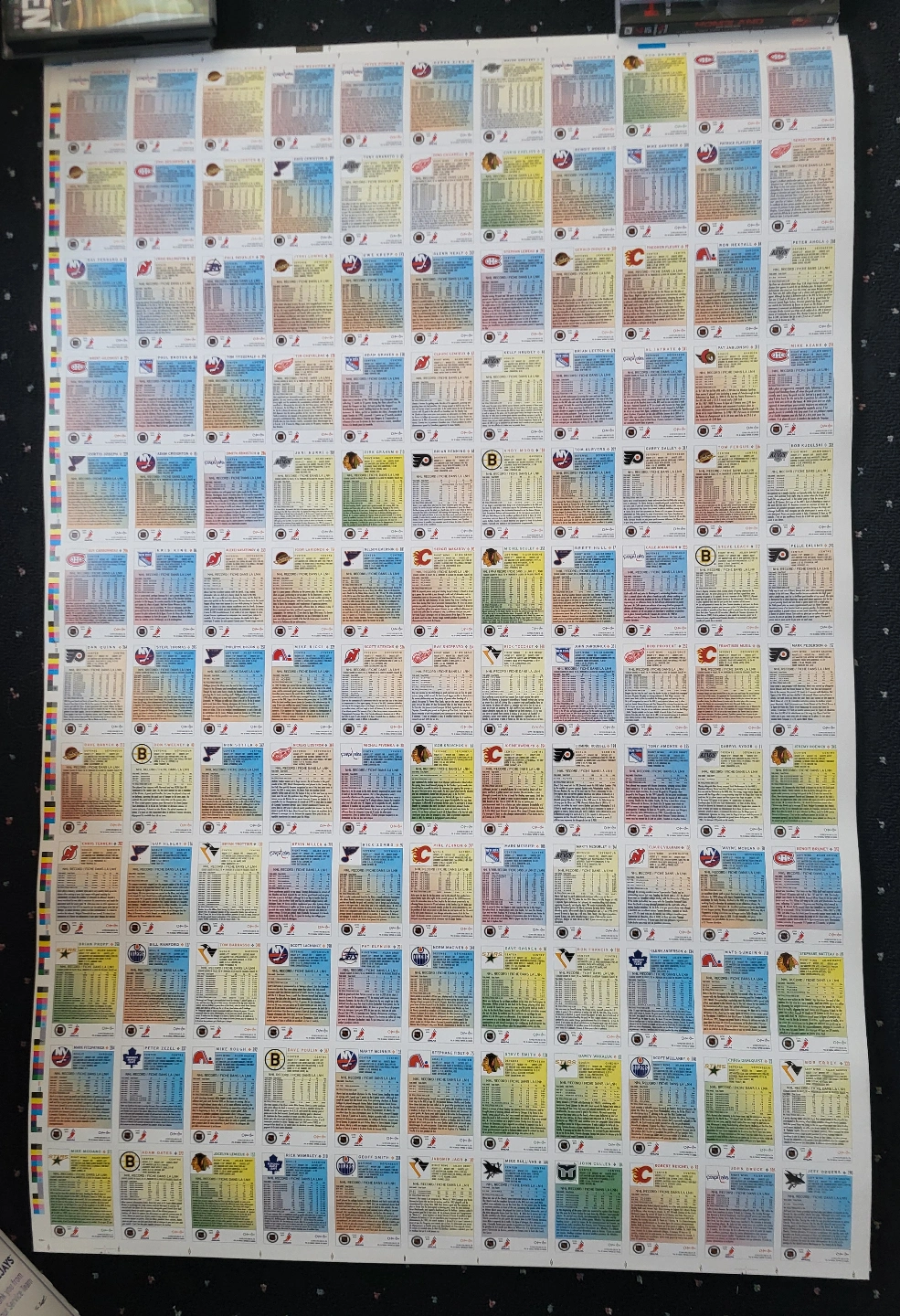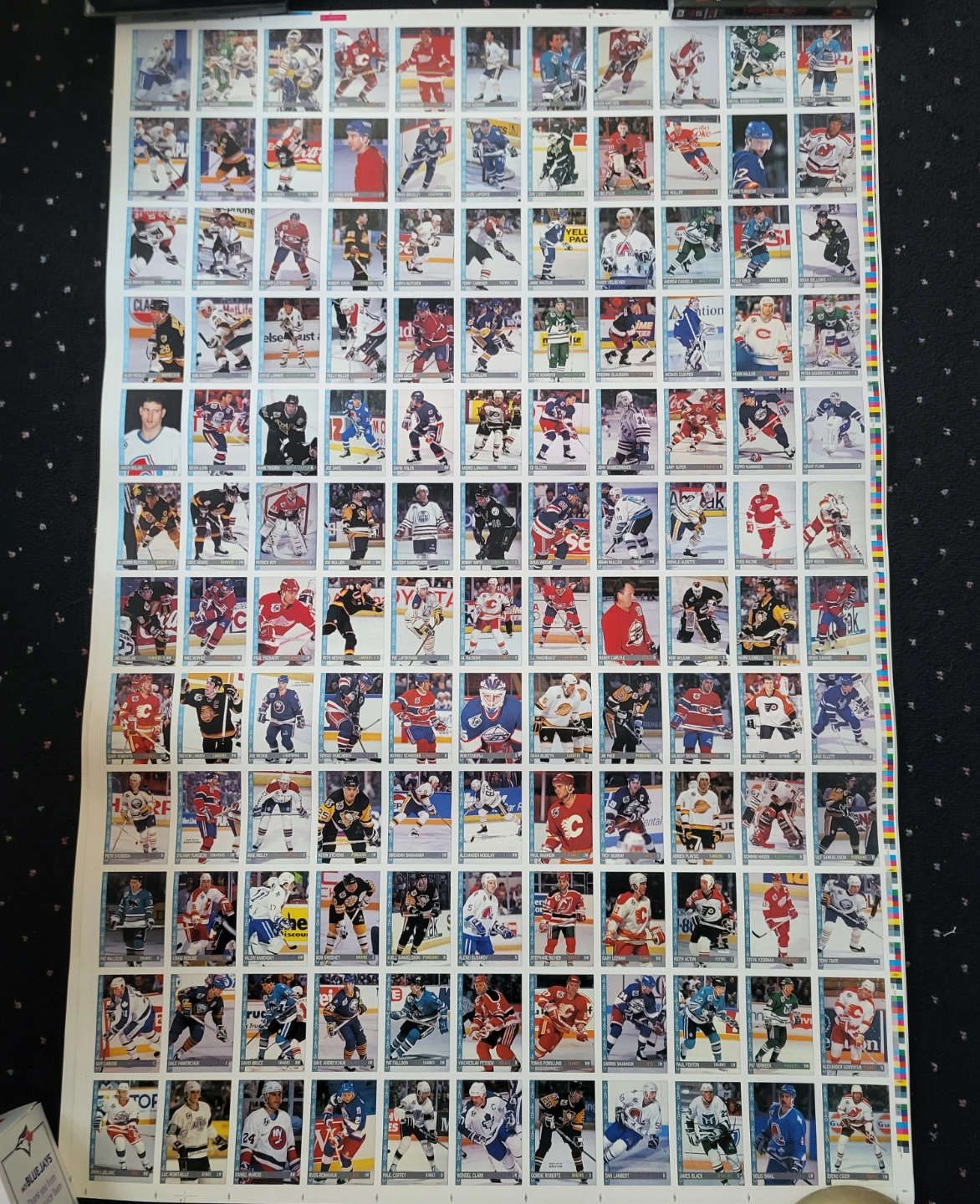 70From O-PEE-CHEE, 1992-1993 complete set of 3 UNCUT Sheets of NHL Stars and Hall of Famers. Sheets only removed to photograph for posting, comes in original box. Many great players featured. Each sheet contains 132 cards. Set includes 3 Checklist cards which breaks down all players by Teams. Great for collectors or enthusiasts. ( Messier, Lemieux, Gretzky, both Espositos, Gilmour, Muller, Sakic, Yzerman, Sittler, and on and on...) Smoke free home. Would look great framed!!! All Sales Final. No returns. Cash only please. Thanks.
