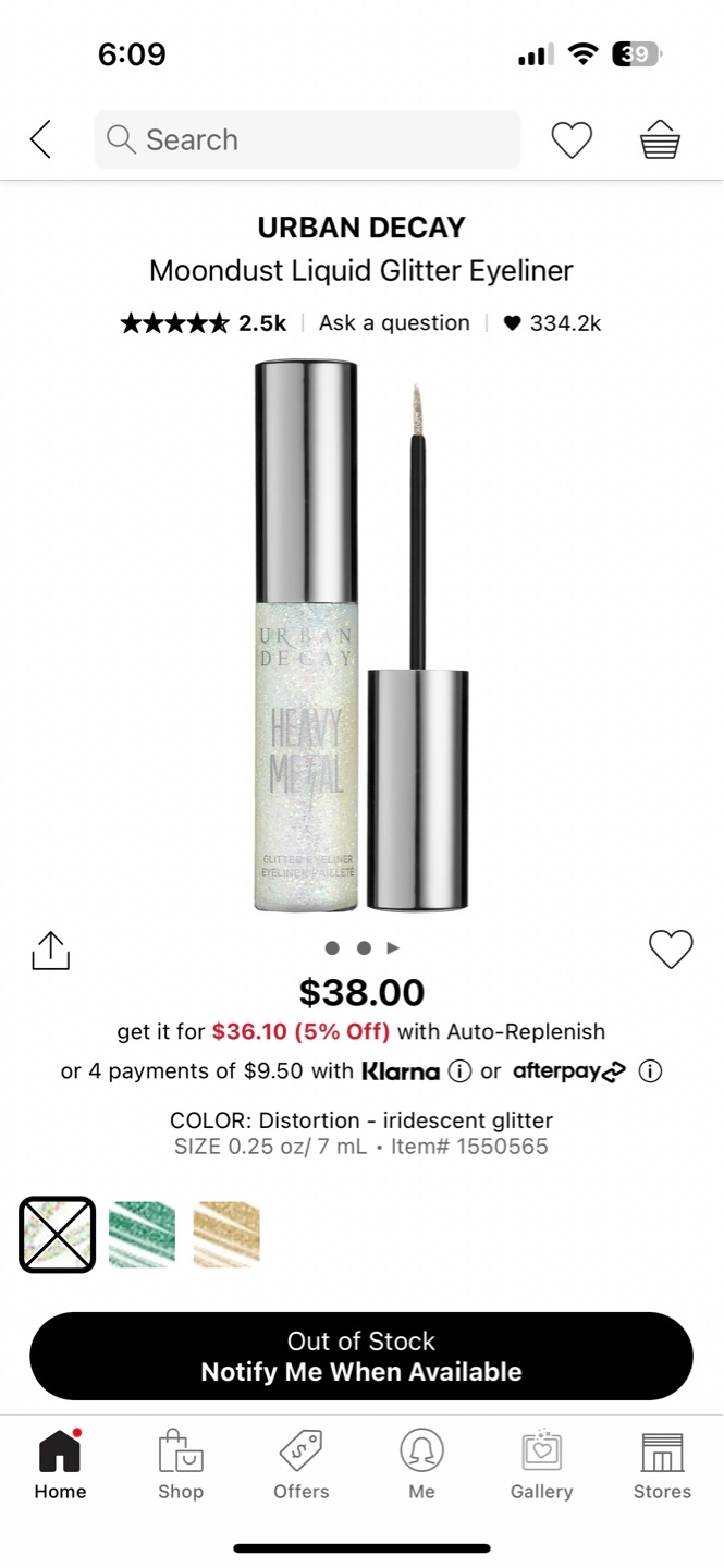Brand New Urban Decay Heavy Metal Glitter Eyeliner in shade Distortion. Iridescent glitter. 0.25 oz / 7 ml.