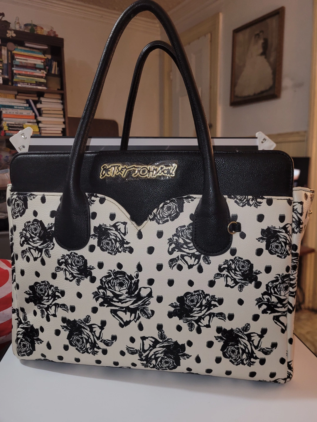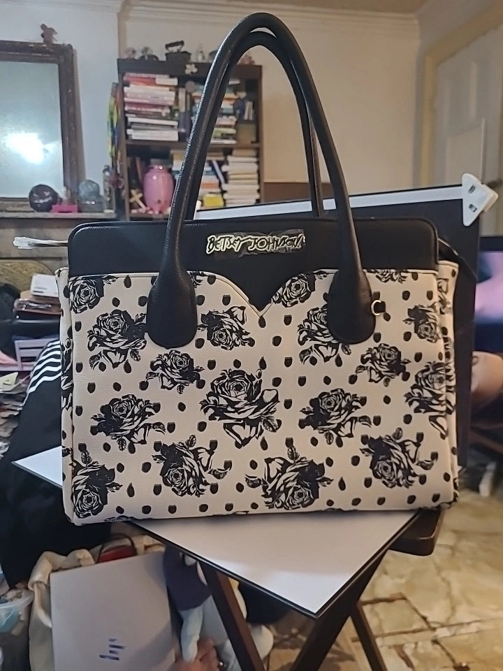 Betsey Johnson DUPE Black and White Rose Tote Bag