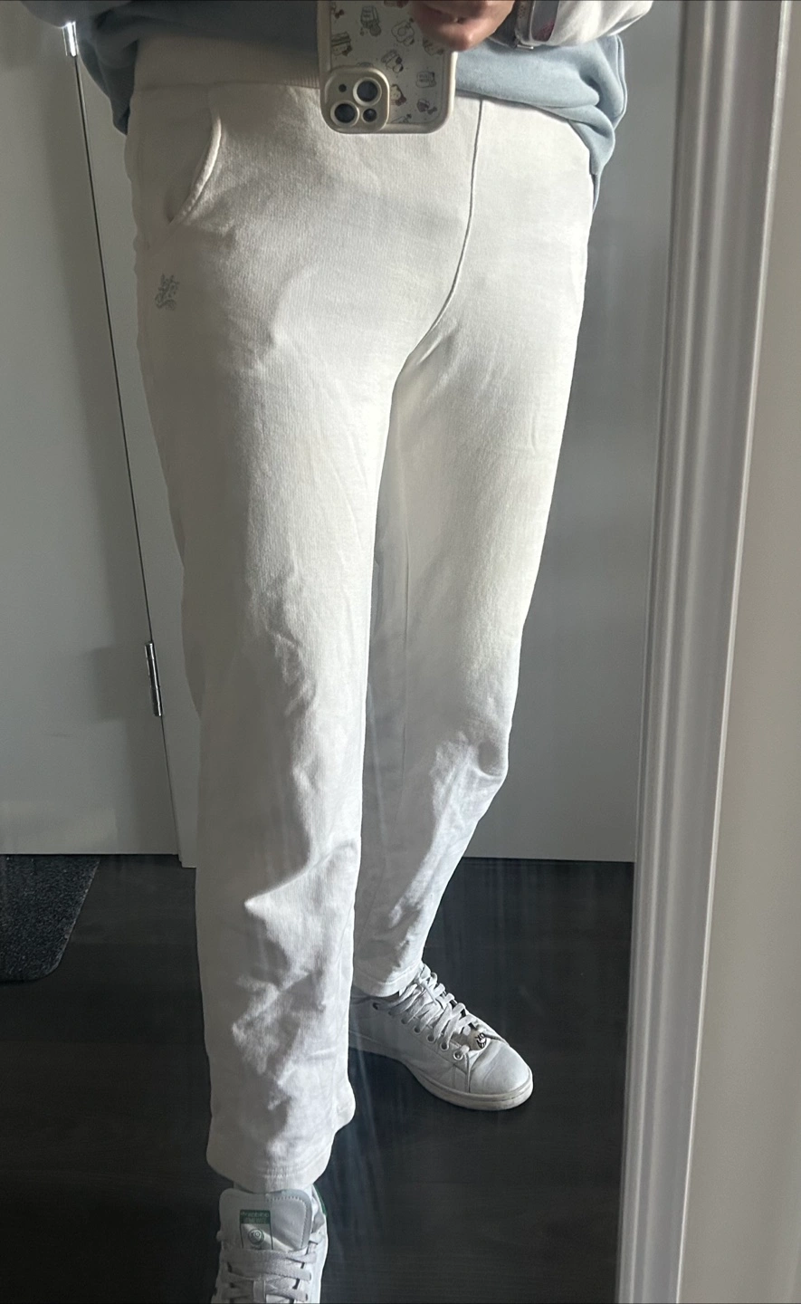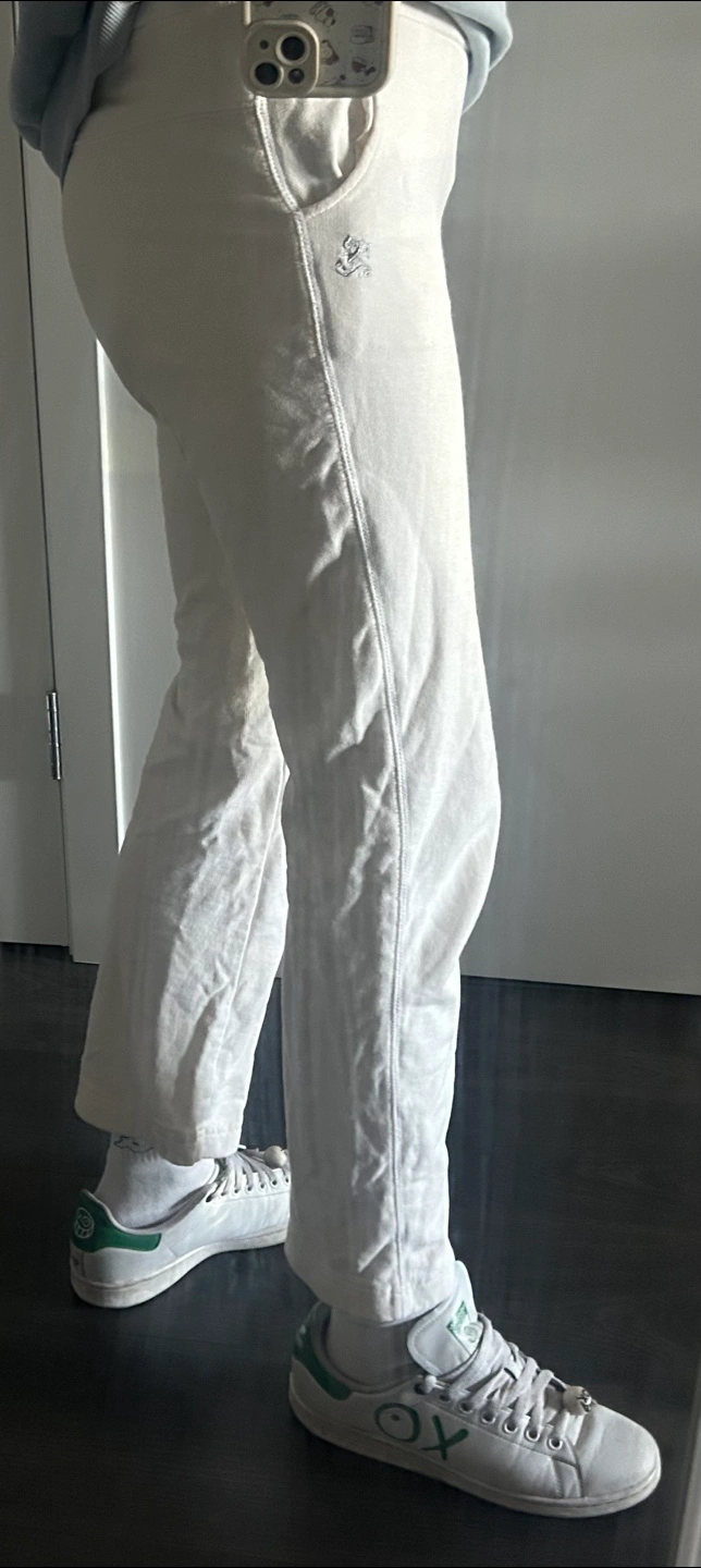 42White pants, size small. Features a small embroidered logo. Casual style, 100%cotton. Good condition.