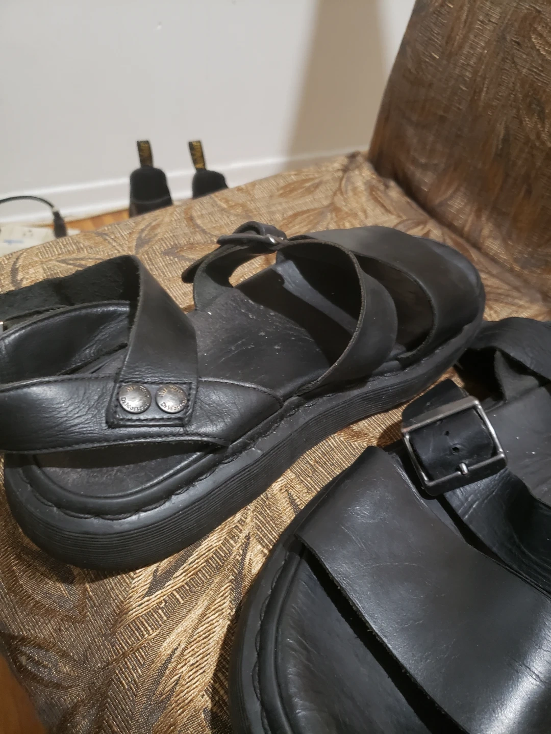 Buy & SellDr. Martens Black Leather SandalsDr. Martens Black Leather Sandals$45Pair of black leather Dr. Martens sandals. Features two adjustable buckles. Thick platform sole. Pre-owned.ConditionGoodSize81/2BrandDr. MartensWHERE TO MEETMarkham and shappardView MapSELLERverifiedclayMalvern17717 reviews0 chats·0 favorites·15 viewsSEND CHAT TO SELLERHi clay! I’m interested in your listing.Hi clay! I’m interested in your listing.Get the Karrot app to chatSign In to chat