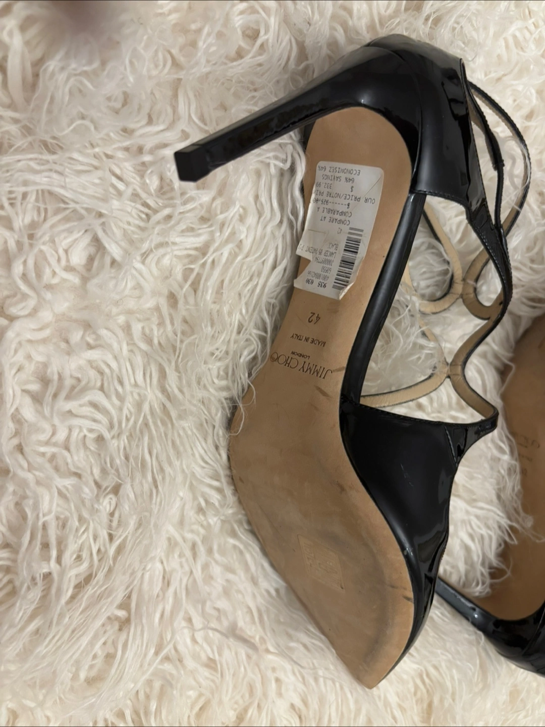 Buy & SellJimmy Choo Black Patent Leather Heels Size 42Jimmy Choo Black Patent Leather Heels Size 42$250Beautiful black patent leather Jimmy Choo heels. Ankle strap closure. Pointed toe. High heels.ConditionNewSize41BrandJimmy ChooWHERE TO MEETLoblaws The East MallView MapSELLERverifiedRosemaryCentennial742 reviews0 chats·0 favorites·23 views