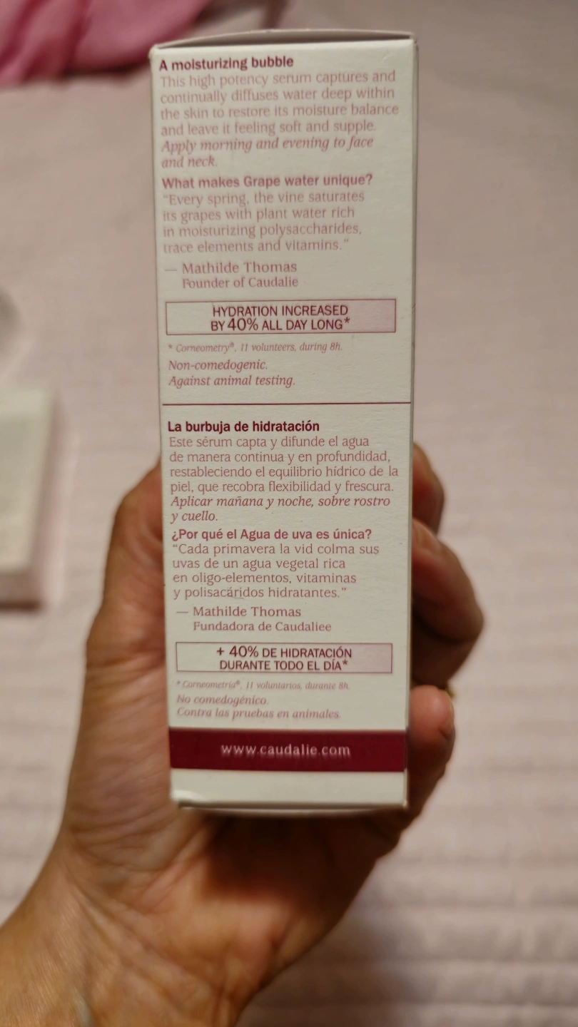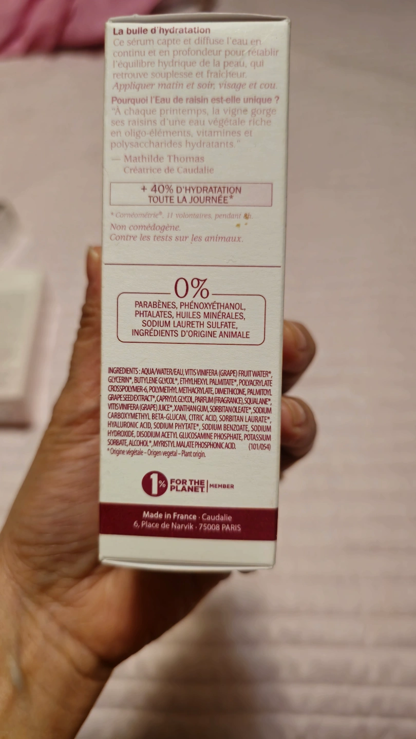 Oil-free hydrating serum. Organic grape water, hyaluronic acid & polyphenols. Hypoallergenic. For dehydrated skin. 30ml.
