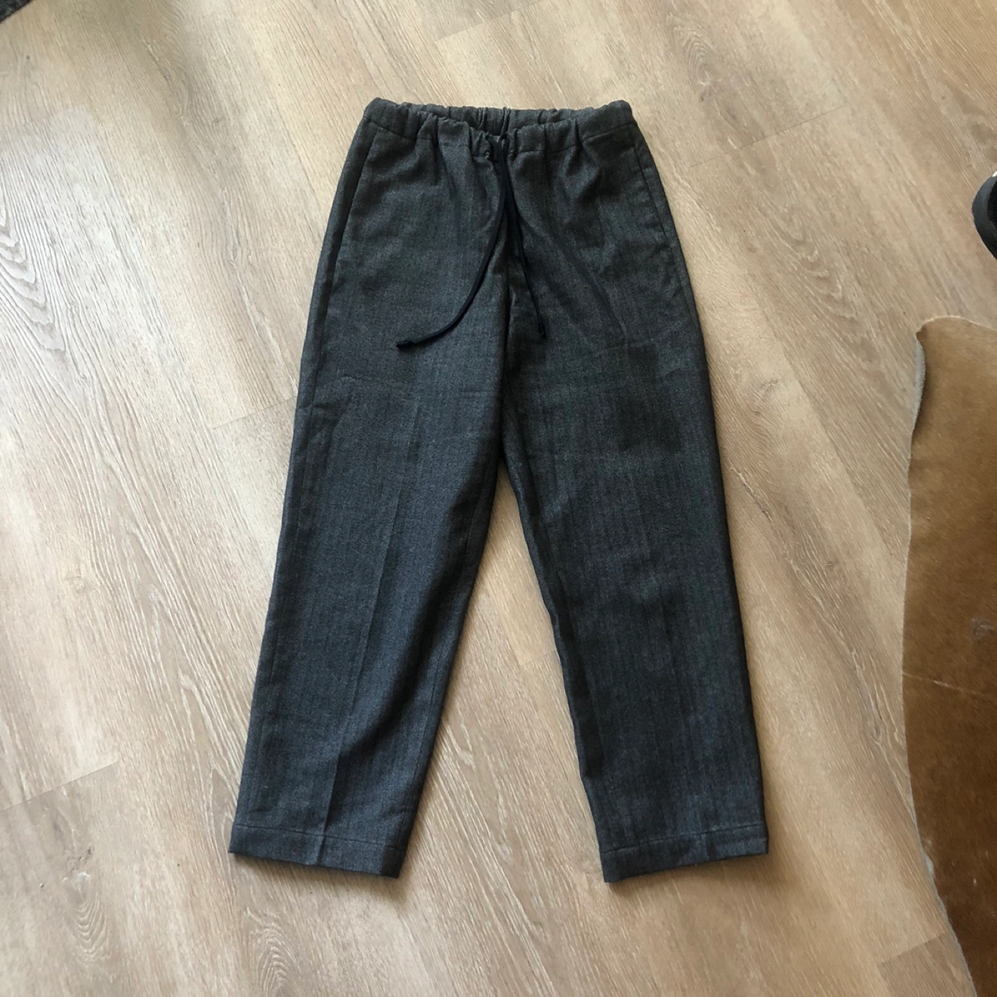 261Grey herringbone drawstring trousers. Size small. Made in China. Excellent condition.