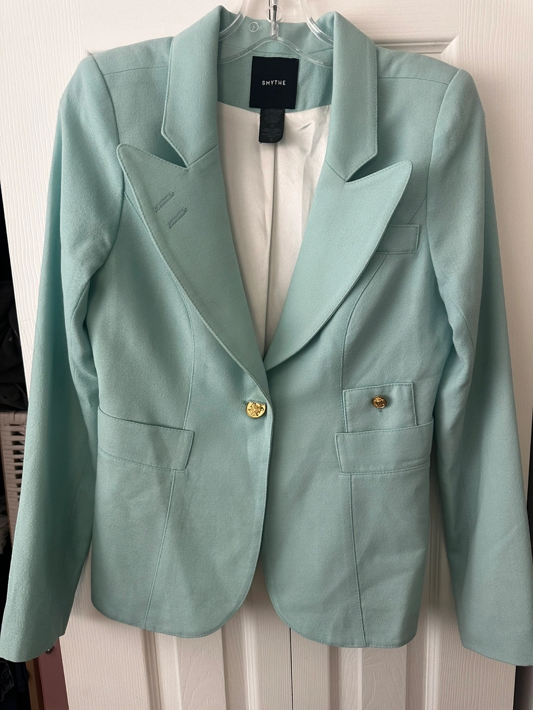 Robin’s Egg Blue Smythe Duchess blazer. In good shape, with one small hole on sleeve. $100