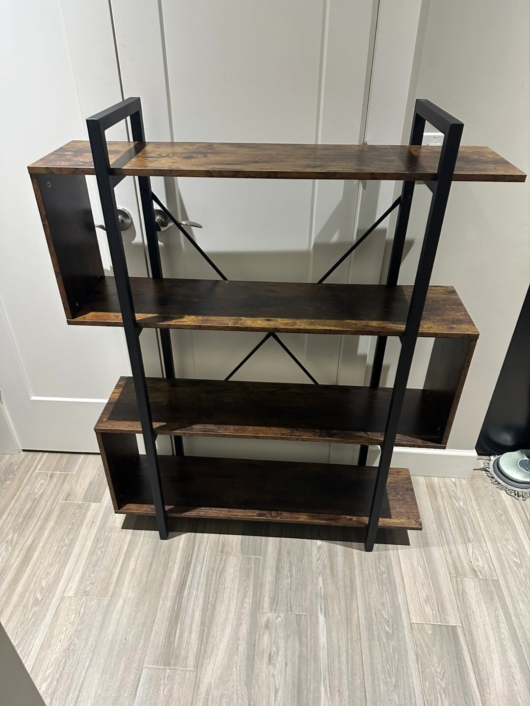 Buy & SellRustic Brown Industrial BookshelfRustic Brown Industrial Bookshelf$75Four-shelf bookcase. Dark brown wood grain finish. Black metal frame. Modern farmhouse style.WHERE TO MEETCheck LocationView MapSELLERverifiedAmandaVictoria Fraserview18312 reviews0 chats·5 favorites·83 views