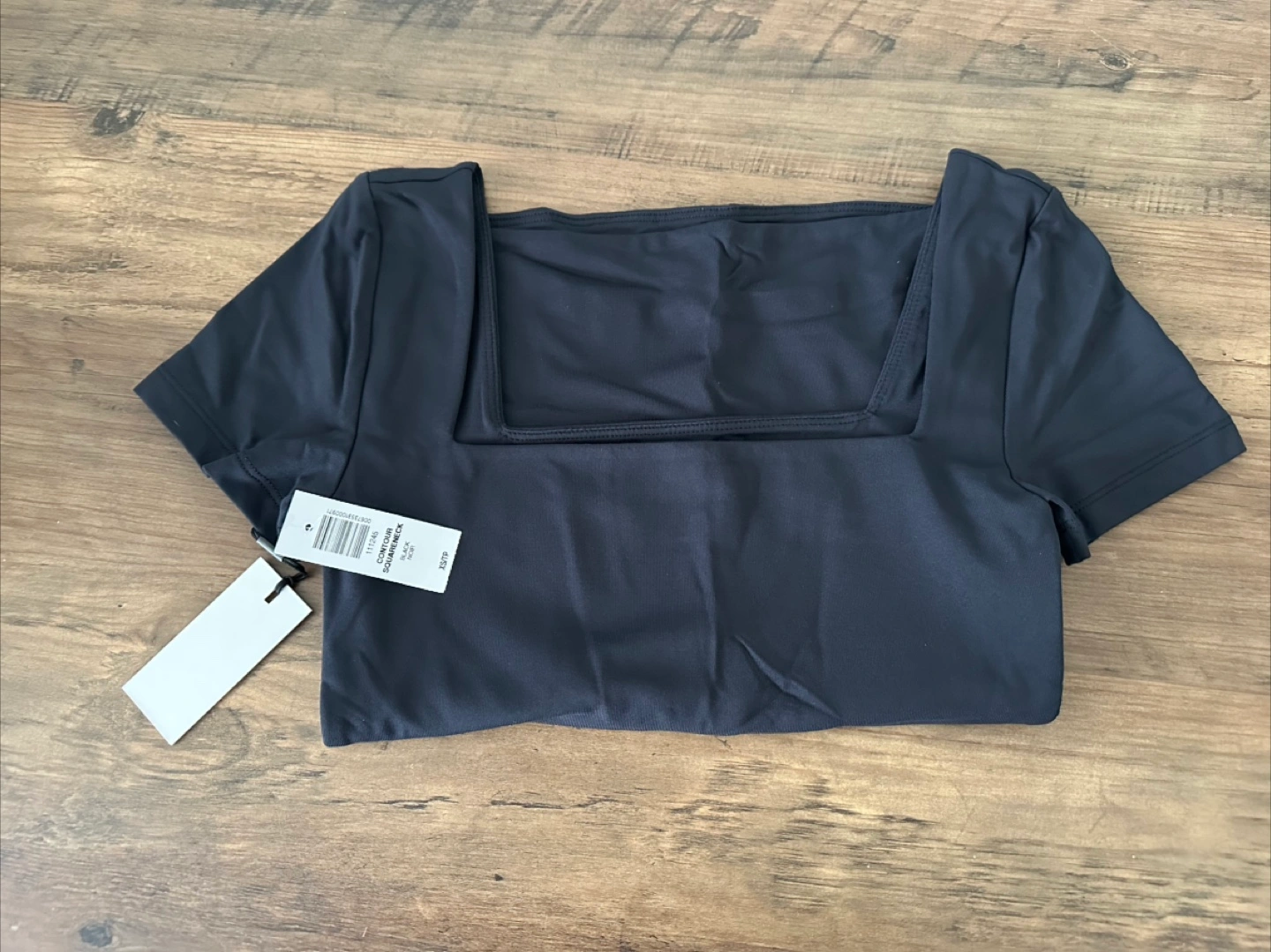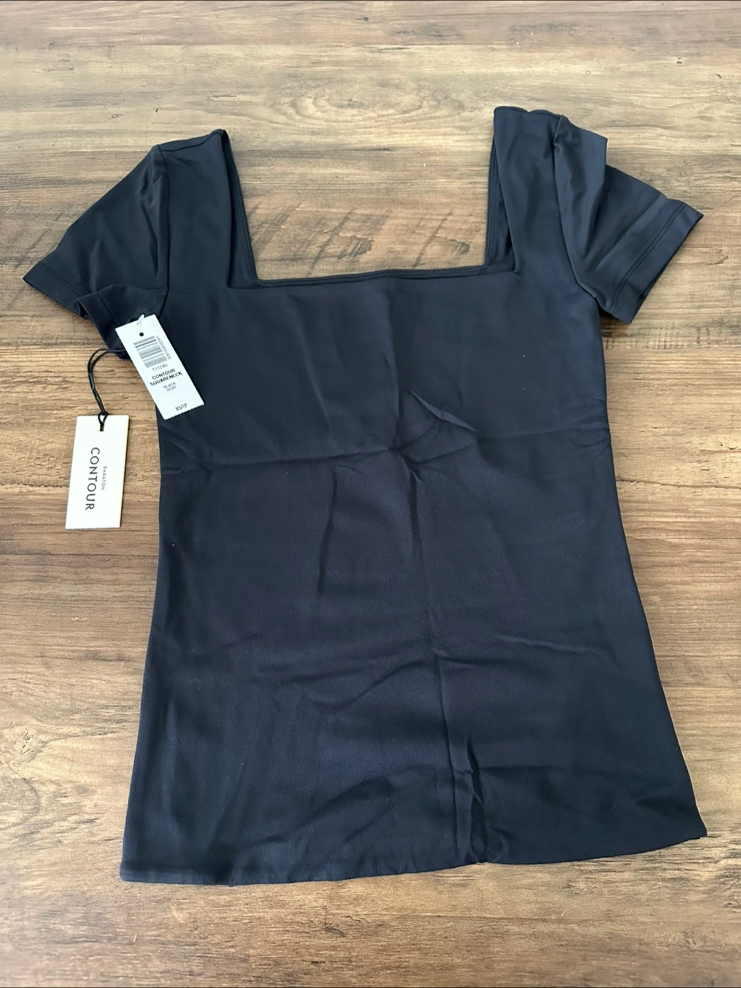 New with tags. Black, square neck, short sleeve top. Soft, stretchy material. Perfect for layering or wearing alone.