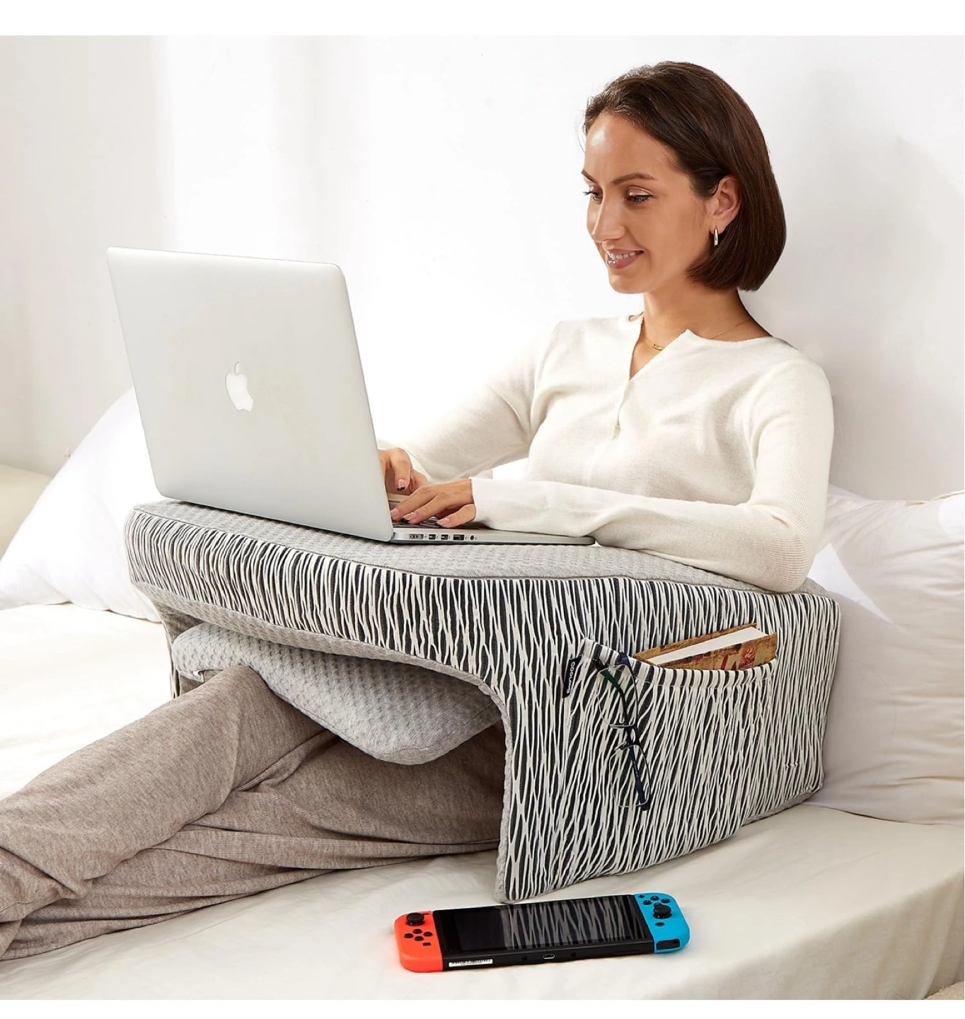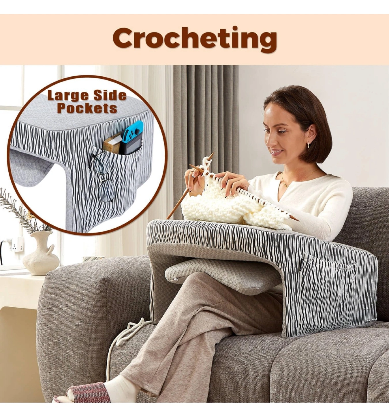 Soft Lap Desk Pillow for Women Student, Reading Pillow with Pocket, Arm Rest Pillow, Memory Foam Bed Rest Pillows can Reading, Working in Bed Sofa(Ash Grey)