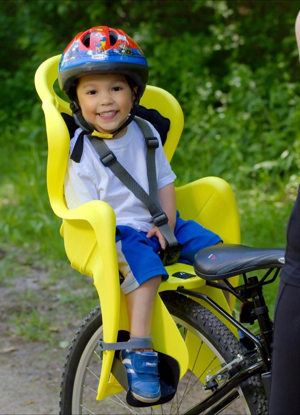 Bright yellow alerts cars to the presence of a child and is a safety plus. In immaculate condition and used with one child. Save big on this top-of-line bike seat. Price is firm.