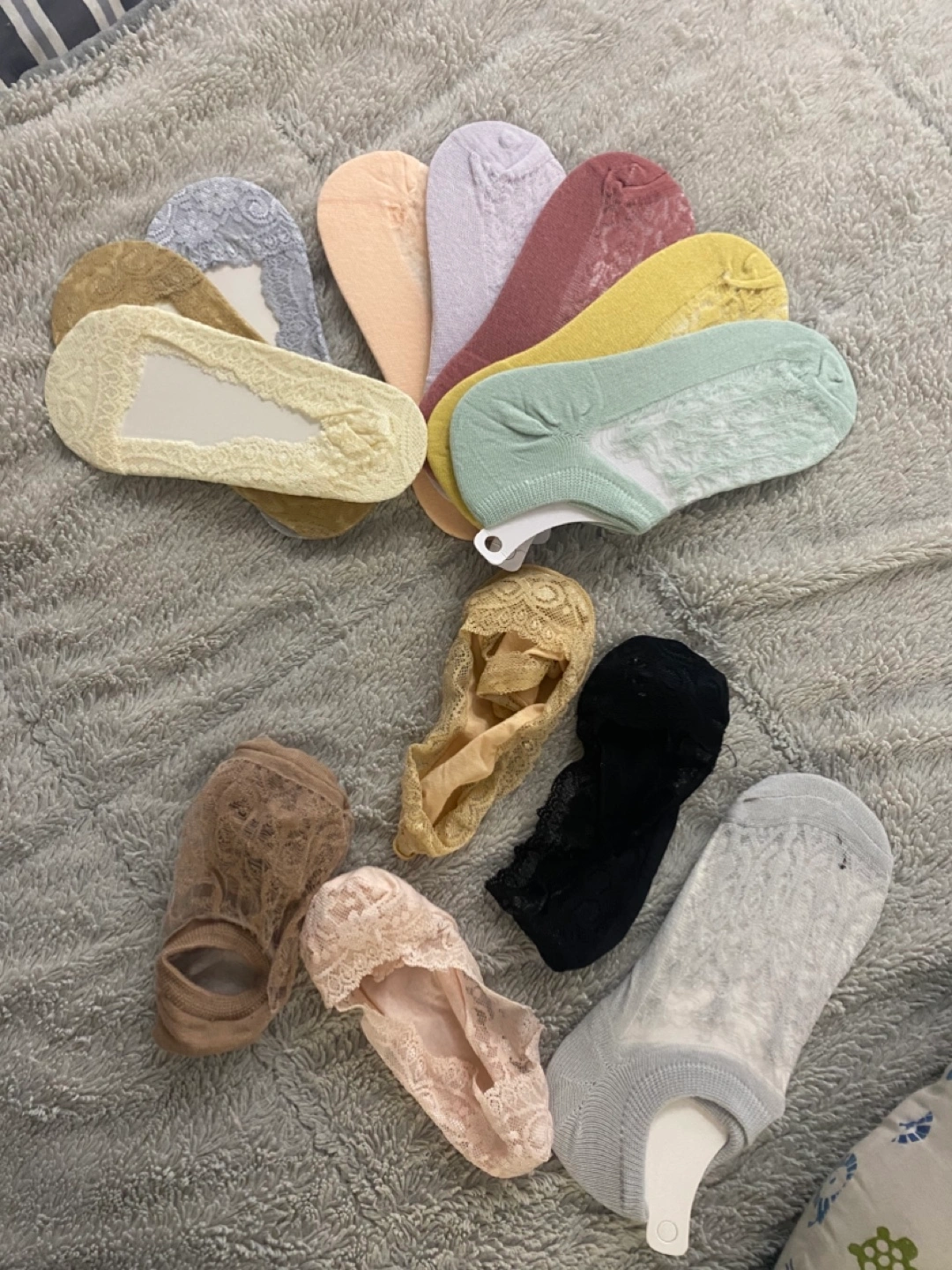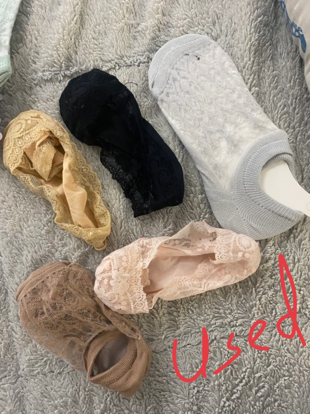 15New and used pairs of women's socks. Lace and mesh detailing. Assorted colours. Great for spring and summer. Note:8pairs are new and 5pairs are used New 8pairs are 9$all for 12$ Old 3$