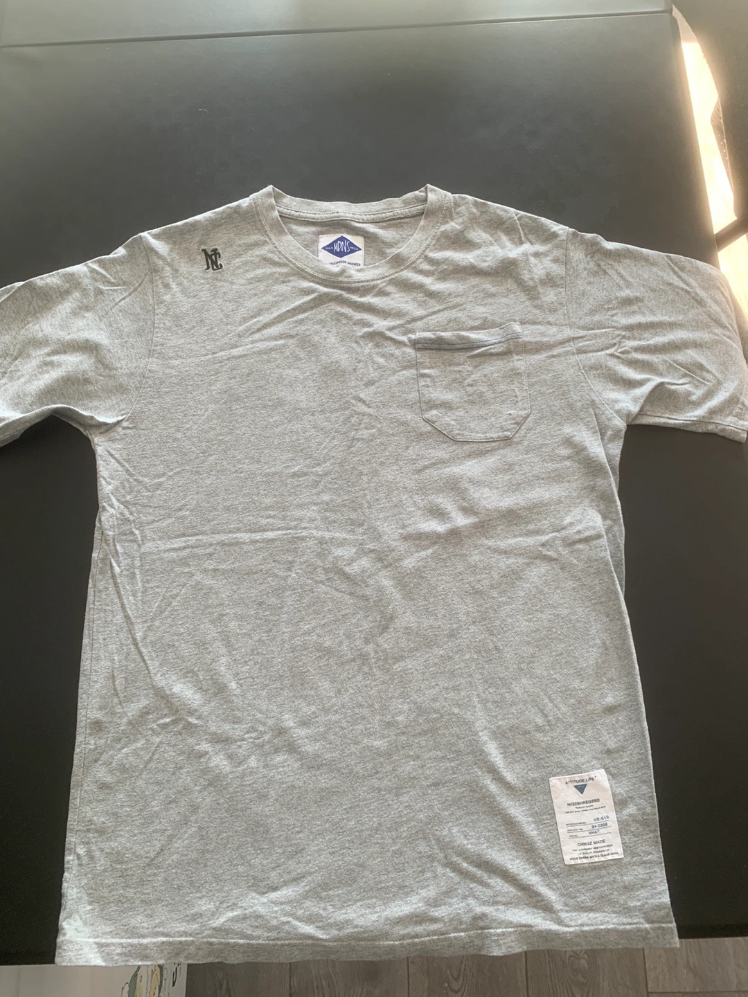 Grey heather t-shirt. Features a small pocket and NHMCSS printed on the back. Small branding tag on the inside collar.