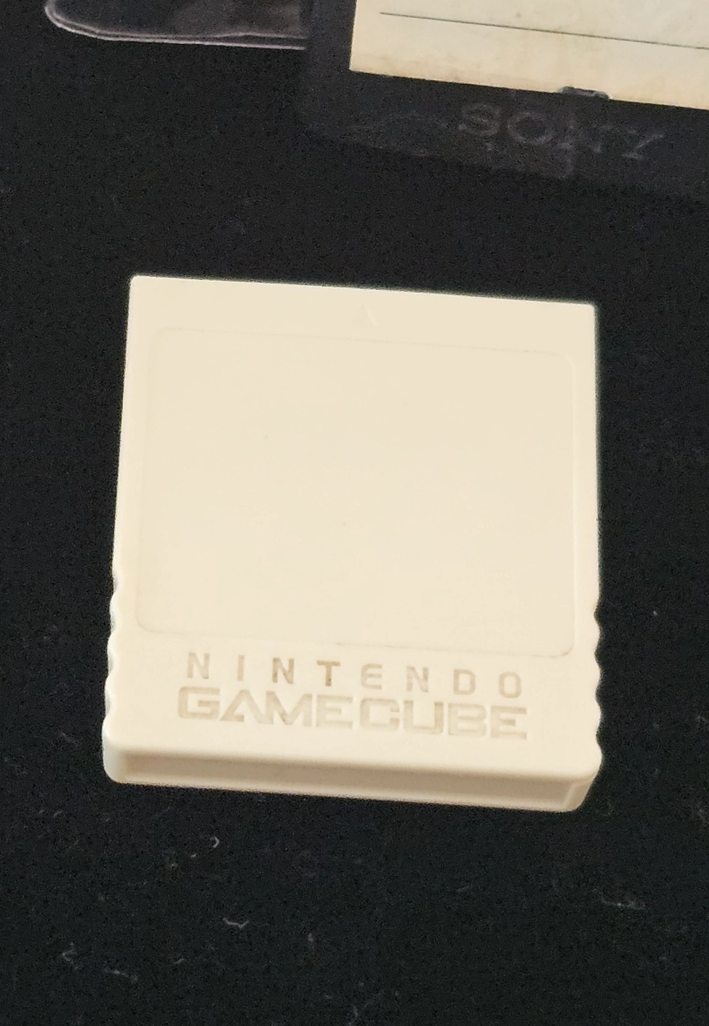 ●1019 blocks (8 MB)Nintendo GameCube memory card. The memory card saves game data for the Nintendo GameCube console as the games are on unwriteable discs. Game save data can take up varying amounts of blocks, from a few to 40 or more.