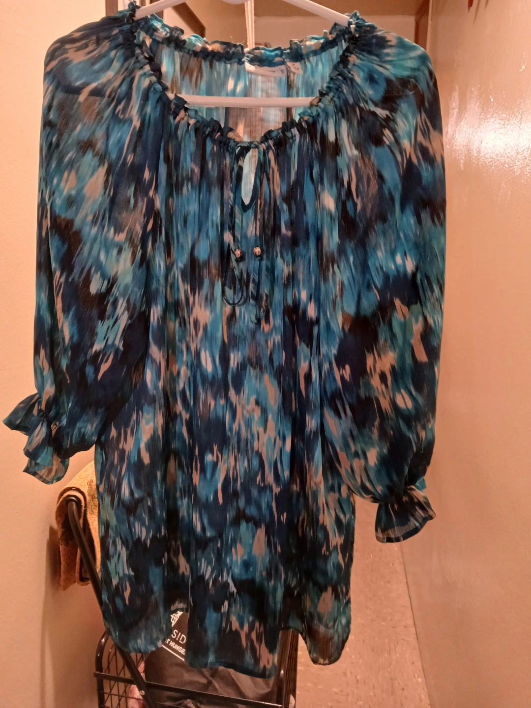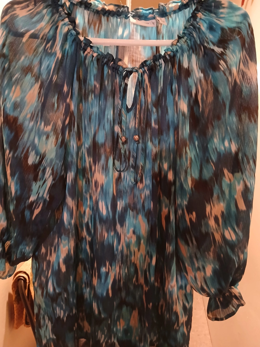 Women's Blue and Teal Abstract Print Blouse, Size M