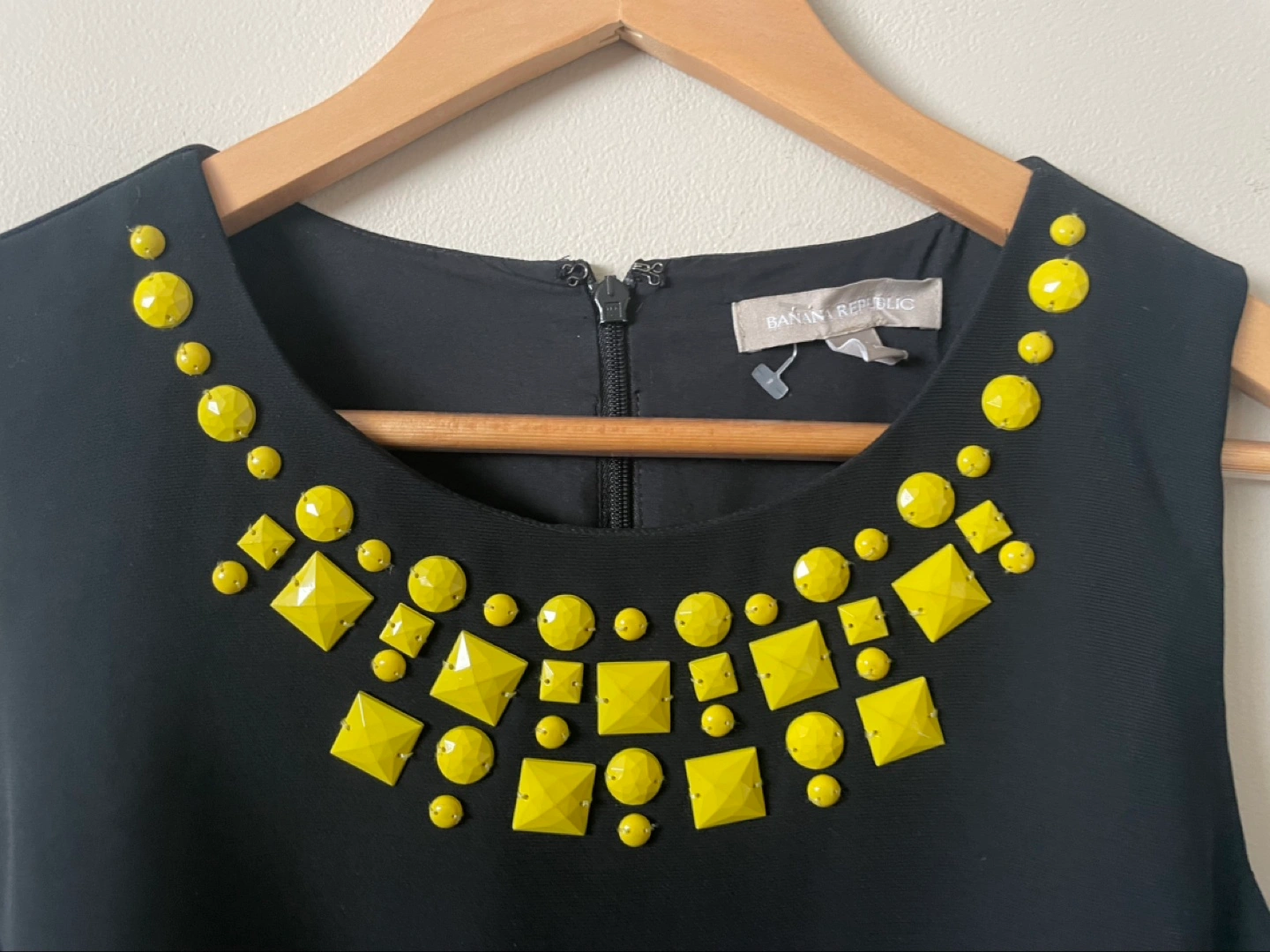 Banana Republic Black Sleeveless Top with Yellow Beaded Neckline