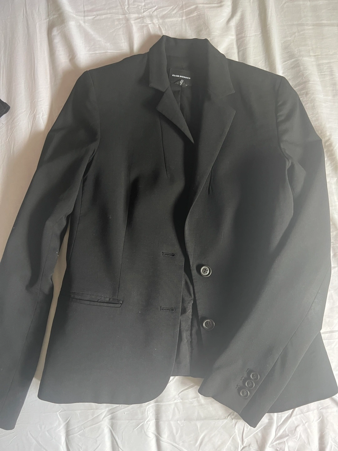 Women's black blazer. Classic style. Two button closure. Long sleeves. Excellent for work or special occasions. size 2