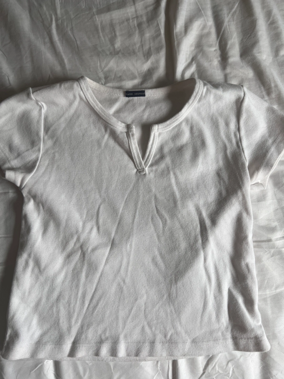 Short sleeve, cropped t-shirt. Keyhole neckline. Excellent condition.