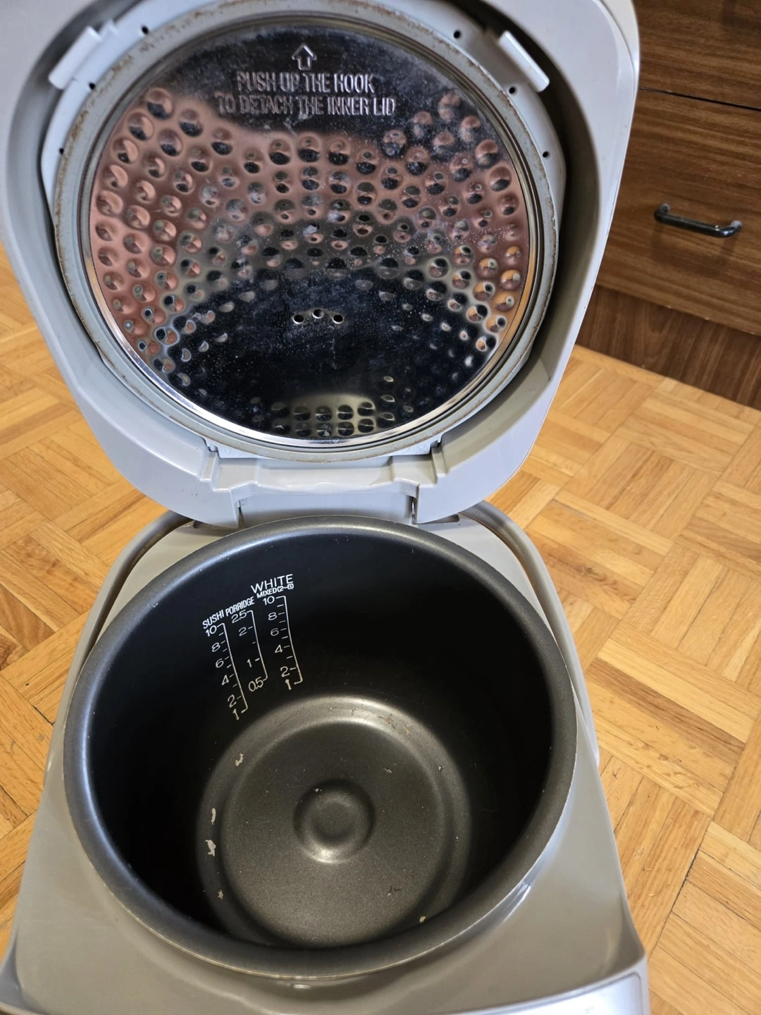 Please note: the inner bowl has some scratches from regular use, but the cooker itself works perfectly.