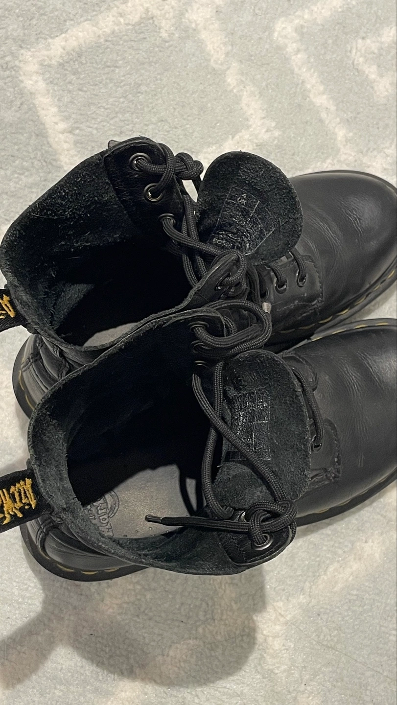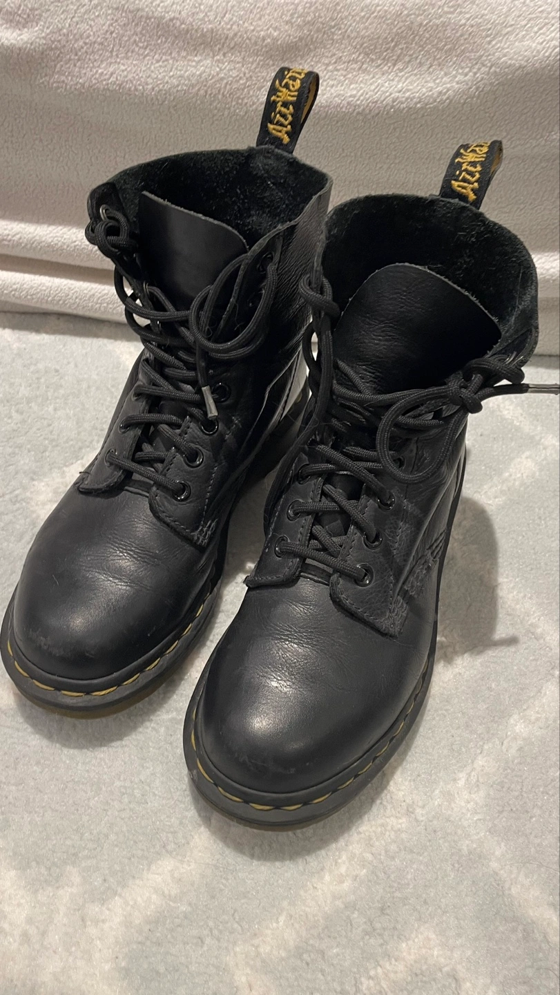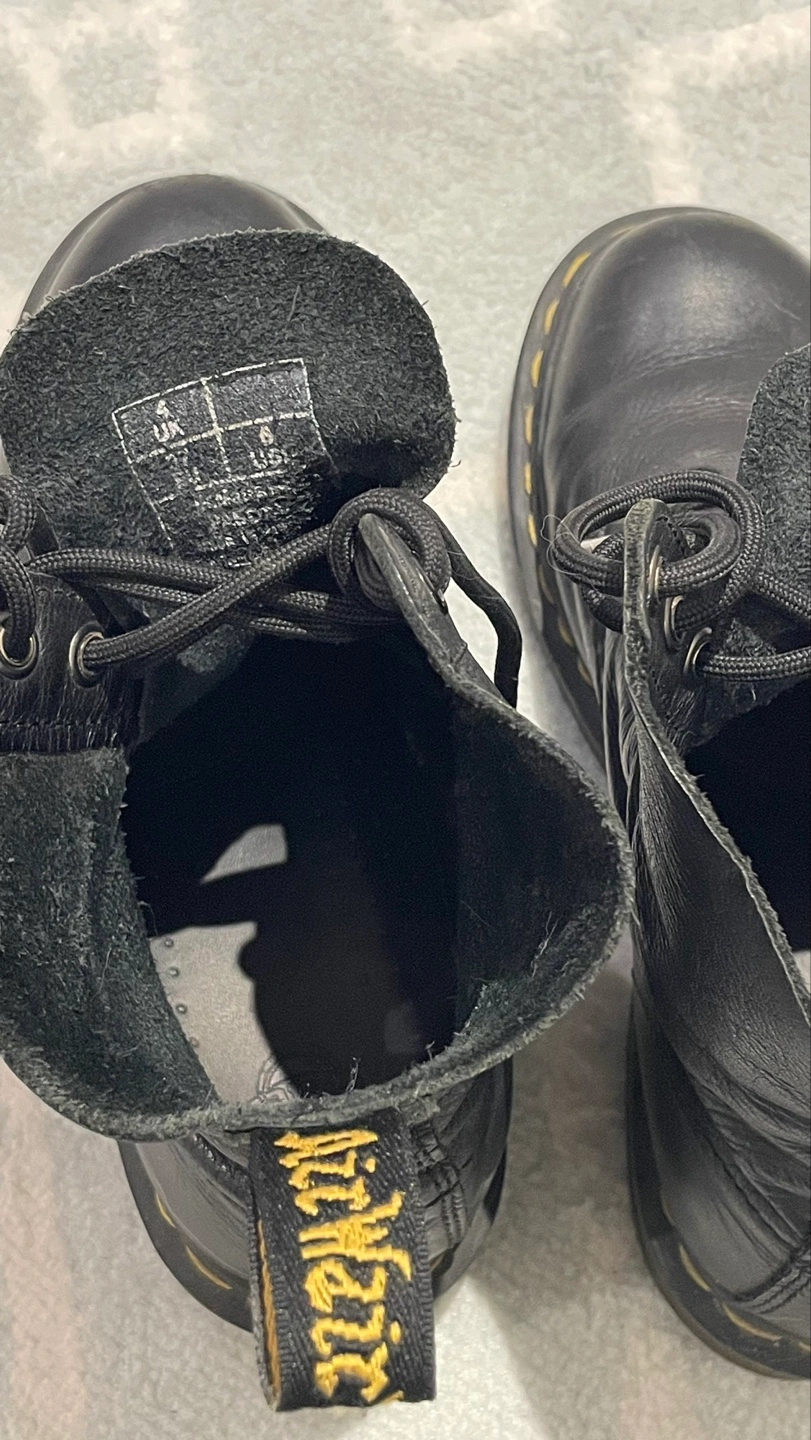 Women's Dr. Martens soft black leather boots. Lace-up style. Good condition. Size UK 4, US 6.