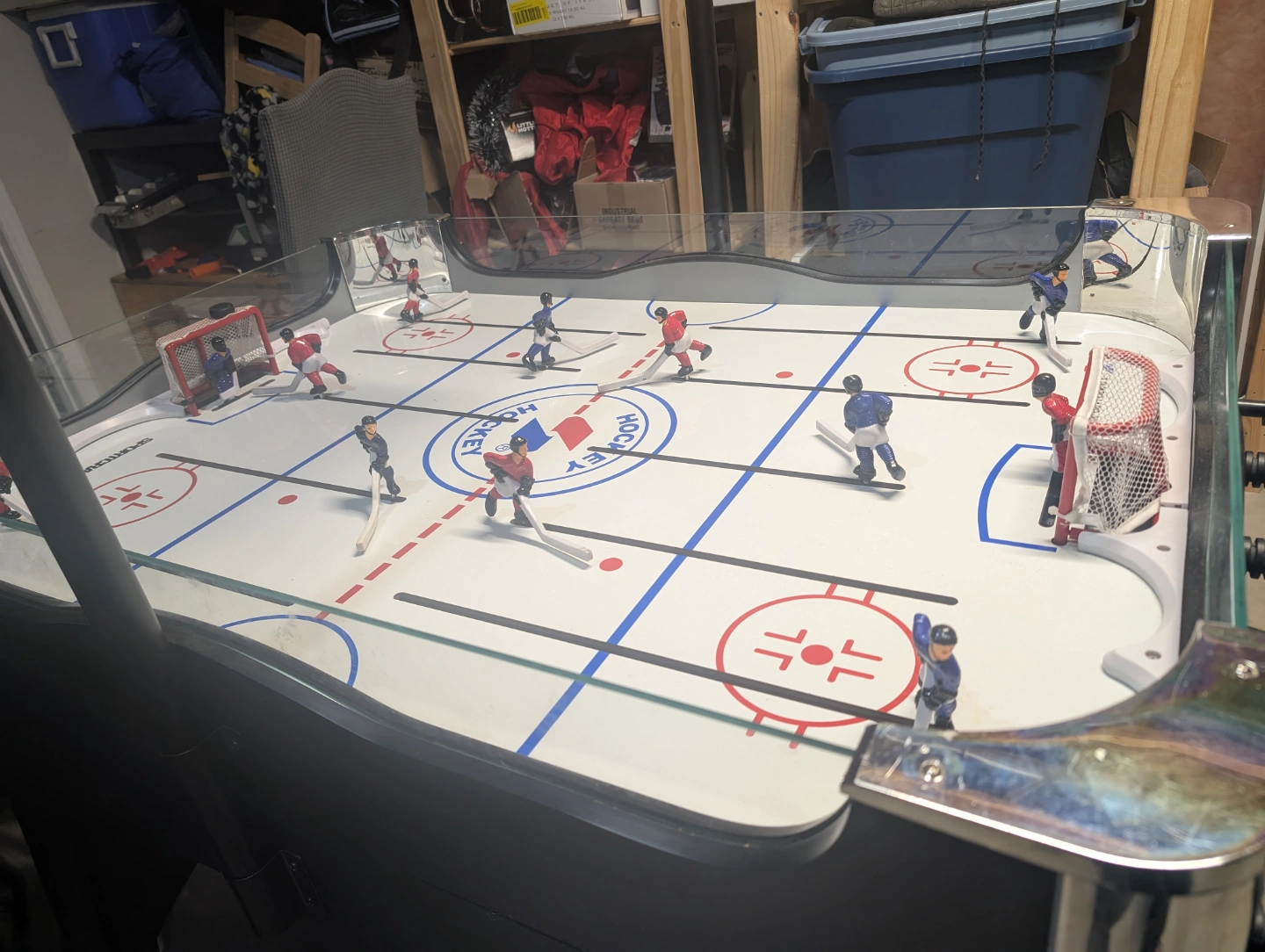 Get ready for some classic fun with this Sportcraft rod hockey table! This game table has provided countless hours of entertainment and is in good condition, ready for a new home where it can bring joy to another generation of hockey fans.