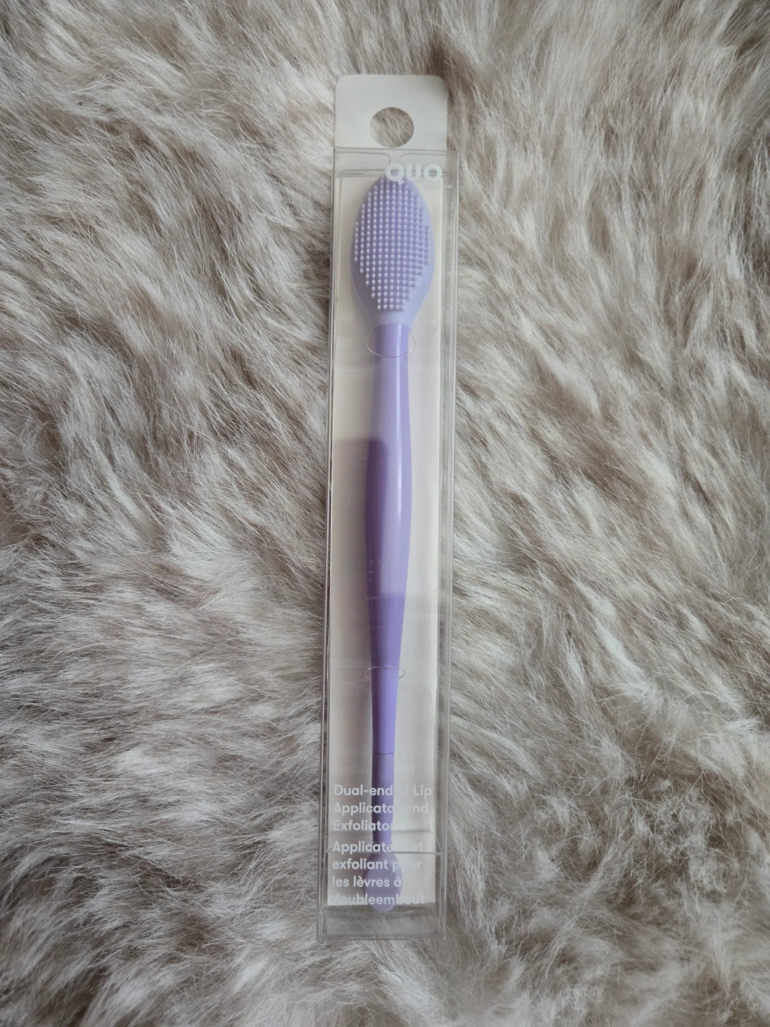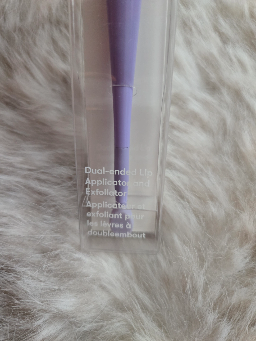 Lavender coloured silicone lip exfoliator and applicator. Dual-ended design. New in box.