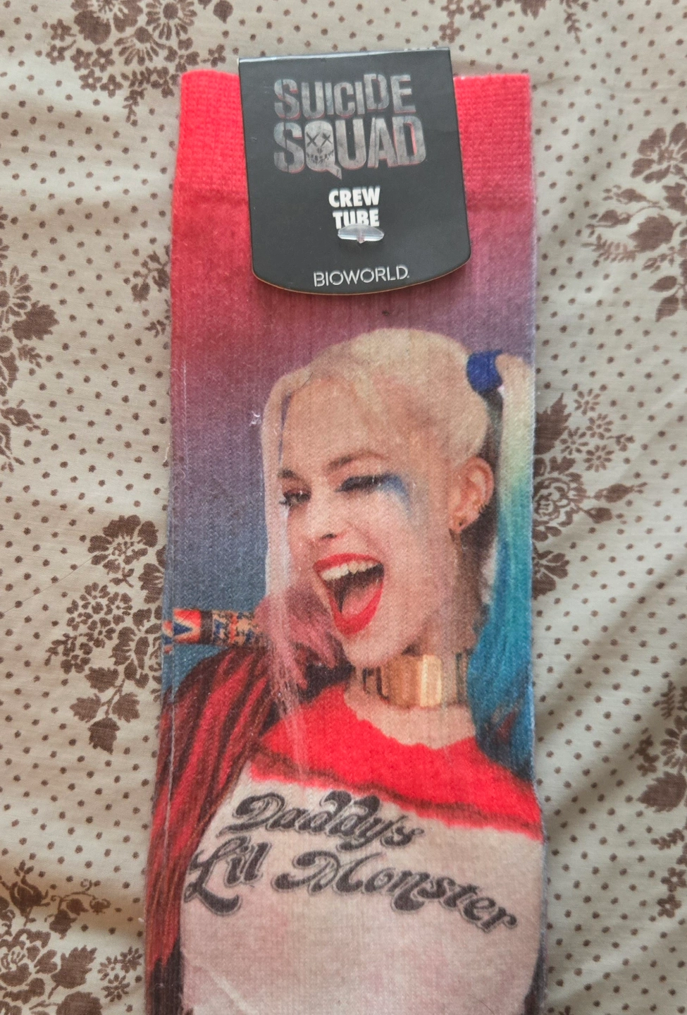 Brand new, never worn. Officially licensed Suicide Squad socks. Featuring Harley Quinn. Crew tube socks. Adult size.